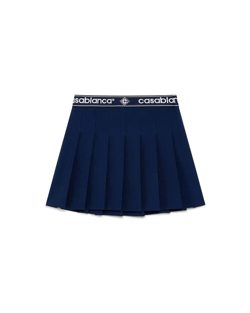 The pleated skirt is a mini-length design crafted from wool blend fabric, featuring the house's signature Casablanca logo and diamond logo. Completed with a branded tape waistband, and refined pleating throughout.