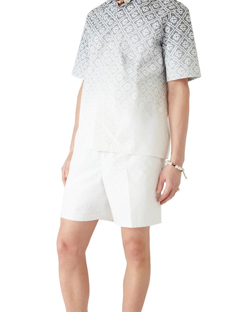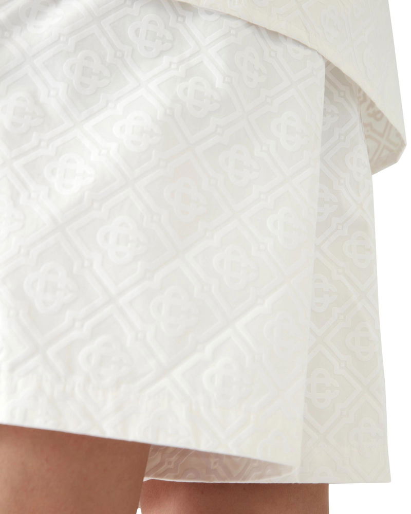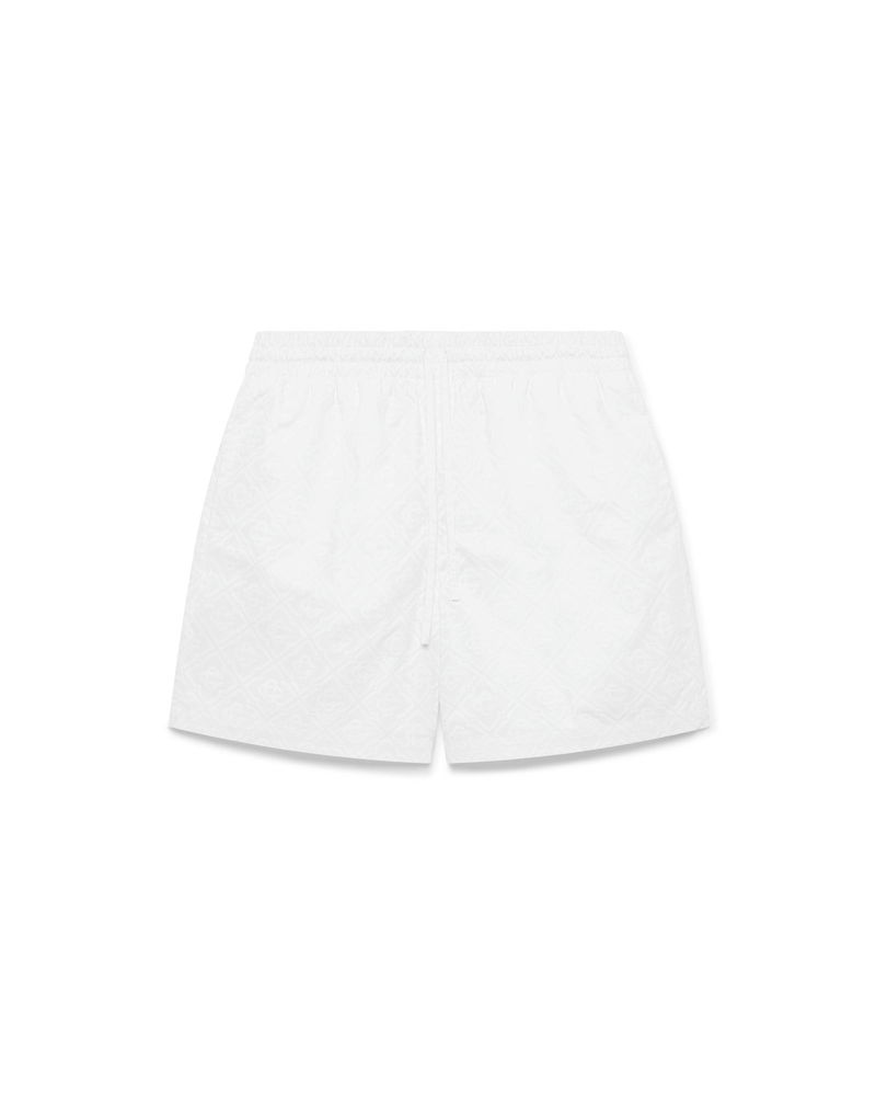 The puff monogram shorts are crafted from cotton blend fabric featuring the house's diamond monogram. Completed with an elasticated waistband, lining, in-seam side pockets and a back patch pocket. Cotton puff monogram fabric 90% cotton 5% acetate 5% acrylic Colour: white Delicate machine wash Wash and iron inside out, do not tumble dry Made in Italy Fits true to size, take your regular size Model is 186cm/6'1 and is wearing a size M Puff Monogram Shorts, Size XS by Casablanca Paris
