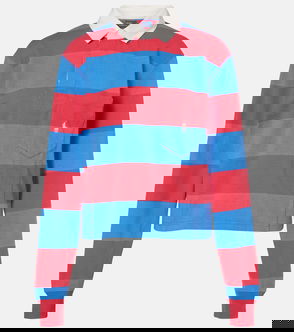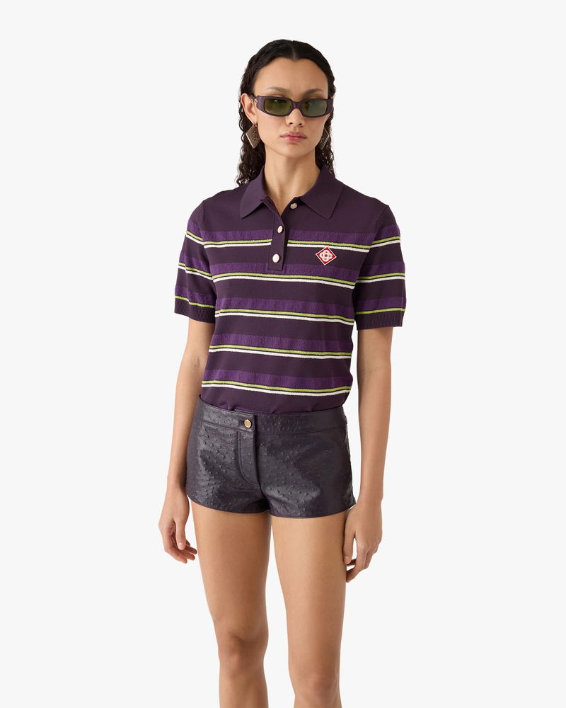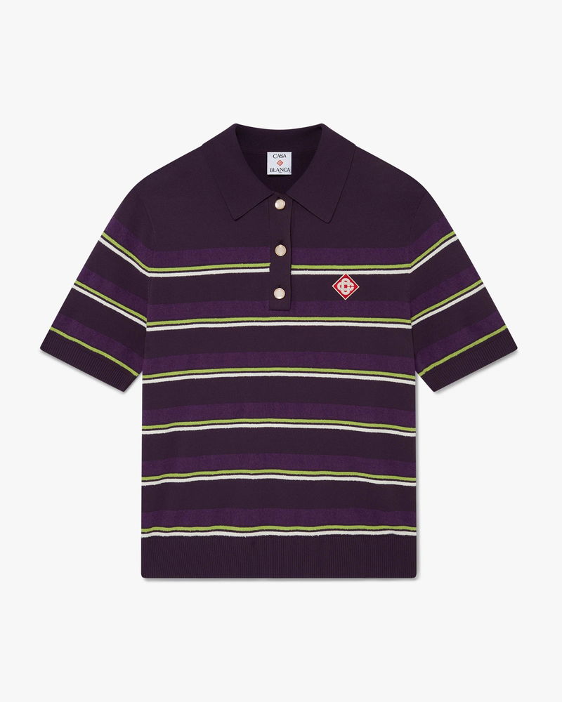 The purple and green striped fitted polo shirt is a refined knitted design, featuring the house's signature diamond logo. Completed with button closure, signature gold rim pearl buttons, rib cuffs, hem, collar and placket, a slim silhouette, and stripe detailing embodying the house's leisure codes.