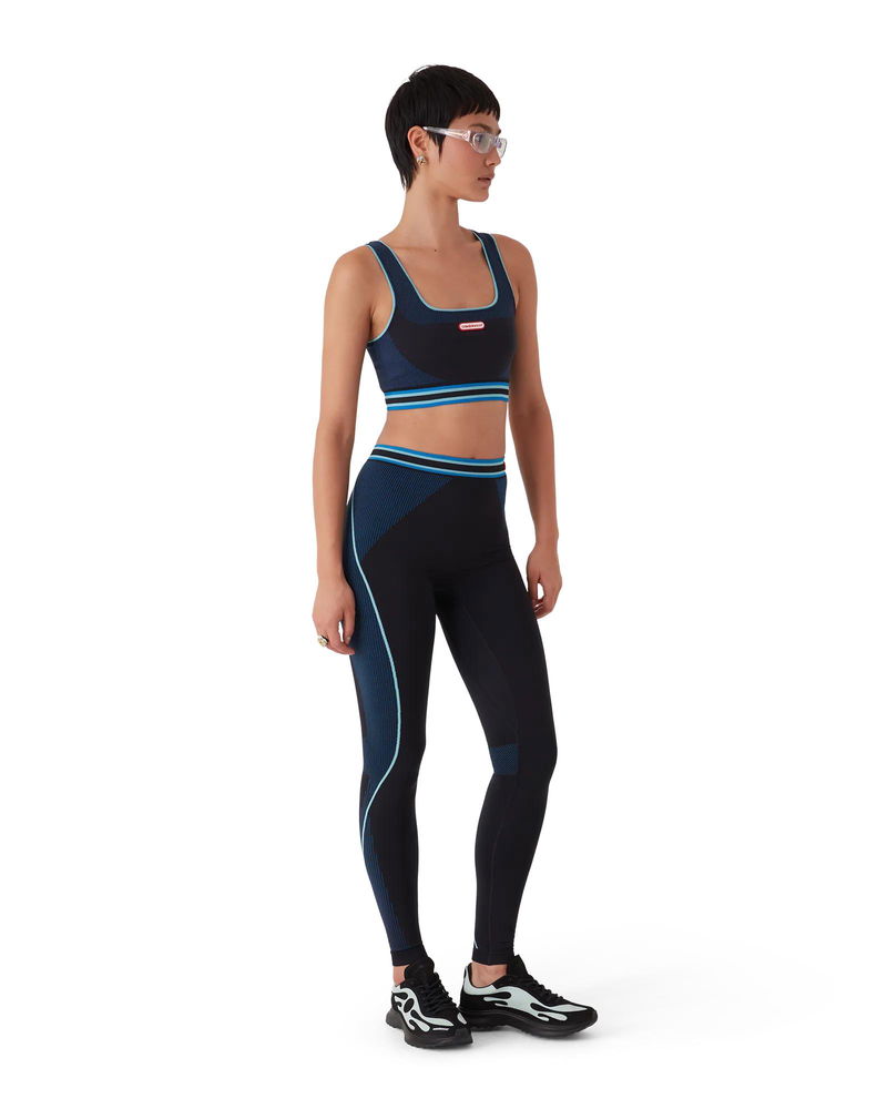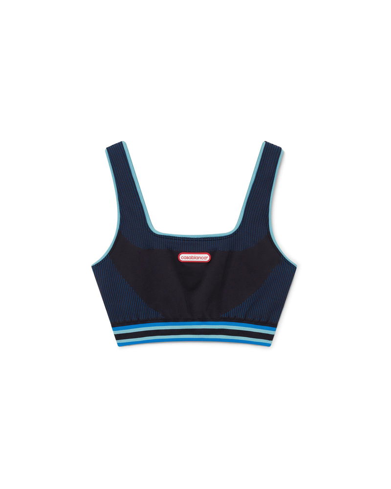 The seamless bralette is a sleeveless sportswear-inspired design featuring the house's interlocking CC logo at its centre, crafted from a stretch fabric. Completed with an elasticised band featuring the house's Casablanca logo, straps, panel details, and a scoop neck.