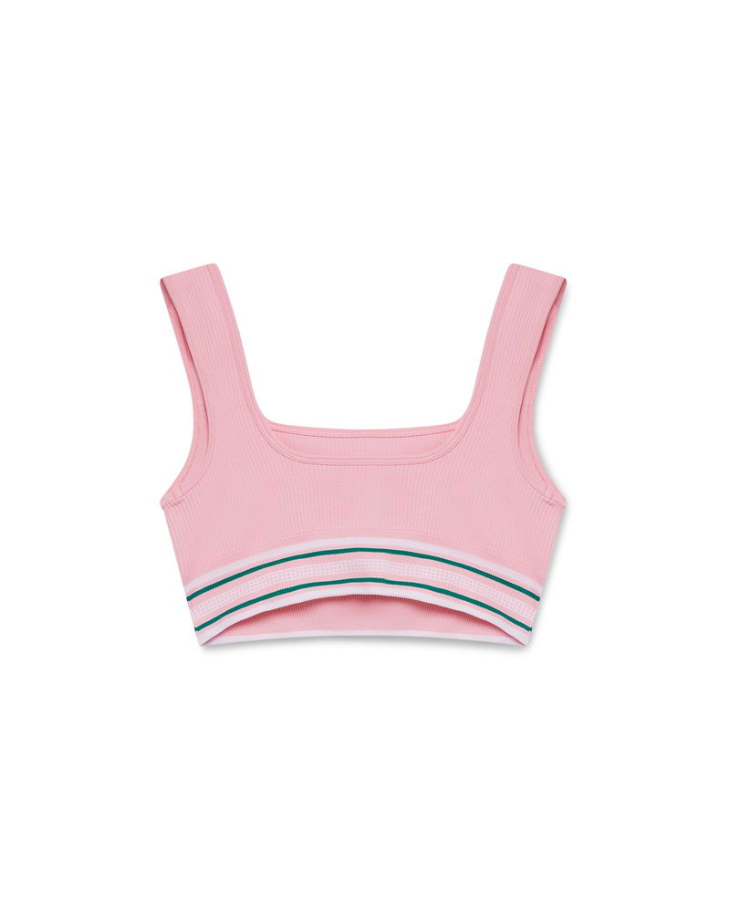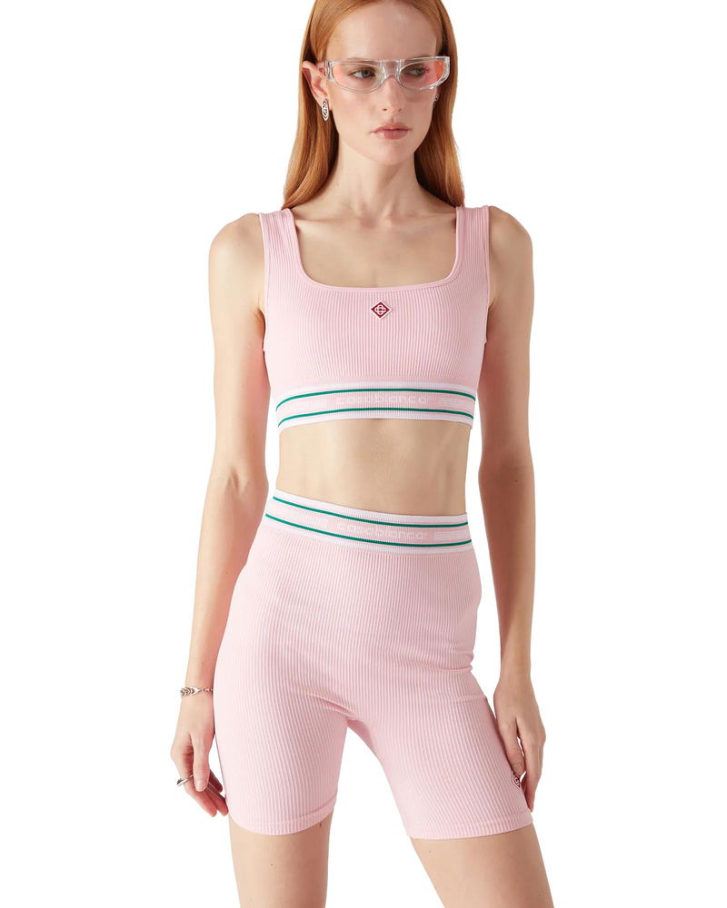 The Casablanca branding bralette is a sleeveless sportswear-inspired design featuring the house's signature diamond logo at its centre, crafted from a stretch fabric. Completed with an elasticised band featuring the house's Casablanca logo, straps, panel details, and a scoop neck.