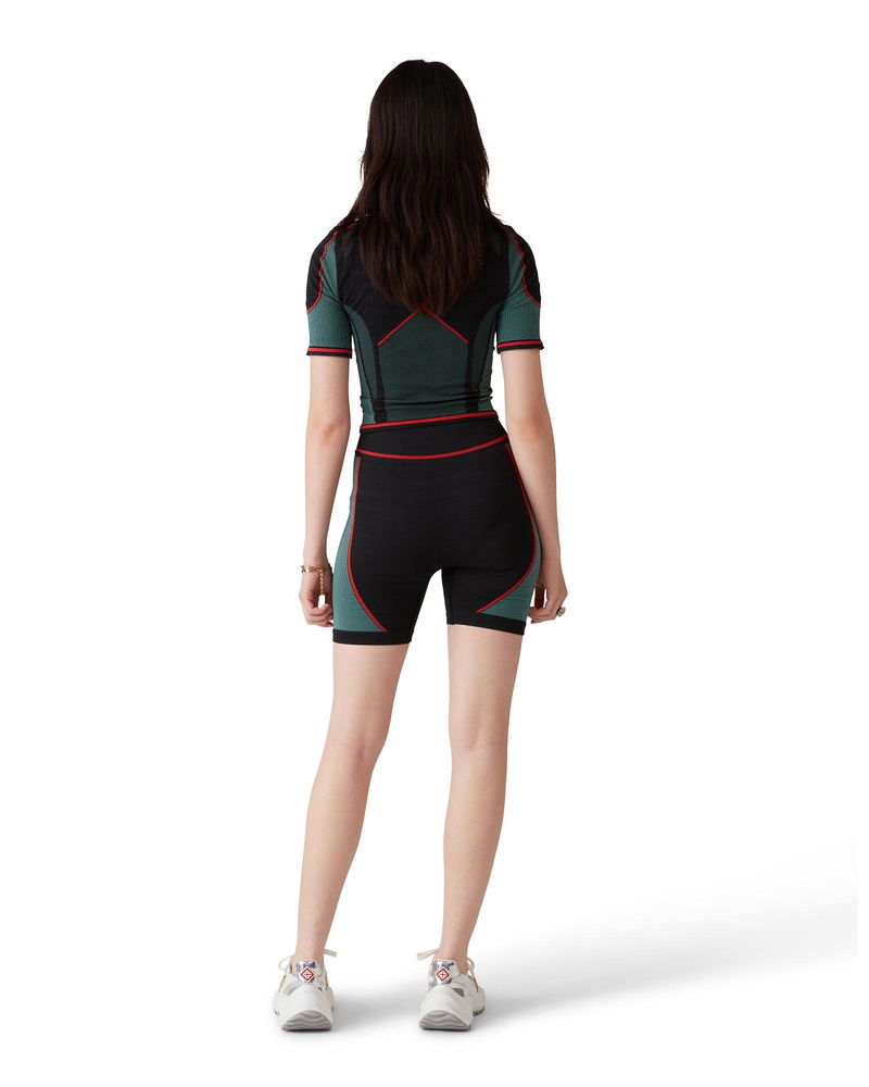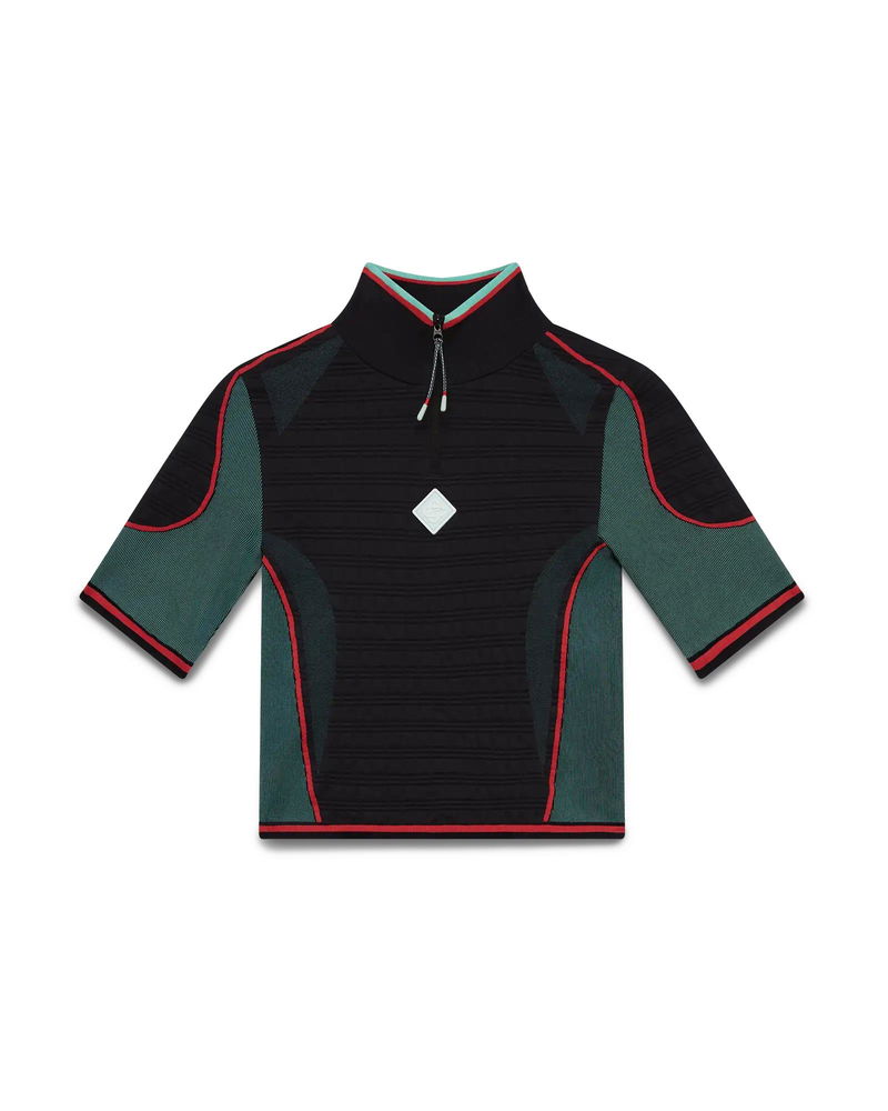 The seamless half-zip shirt is a short-sleeve sportswear-inspired design crafted from a seamless rib stretch fabric. Completed with a zip closure, a polo neck and features the house's diamond logo and panel detail.