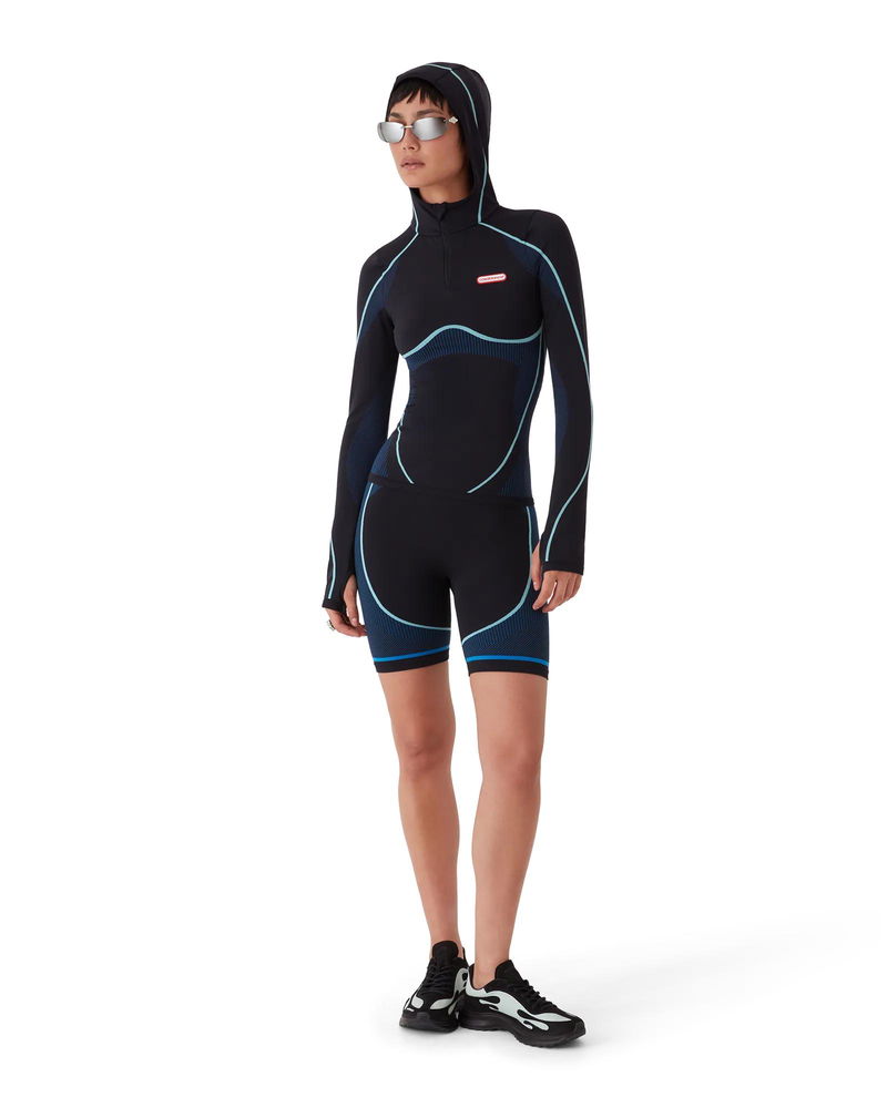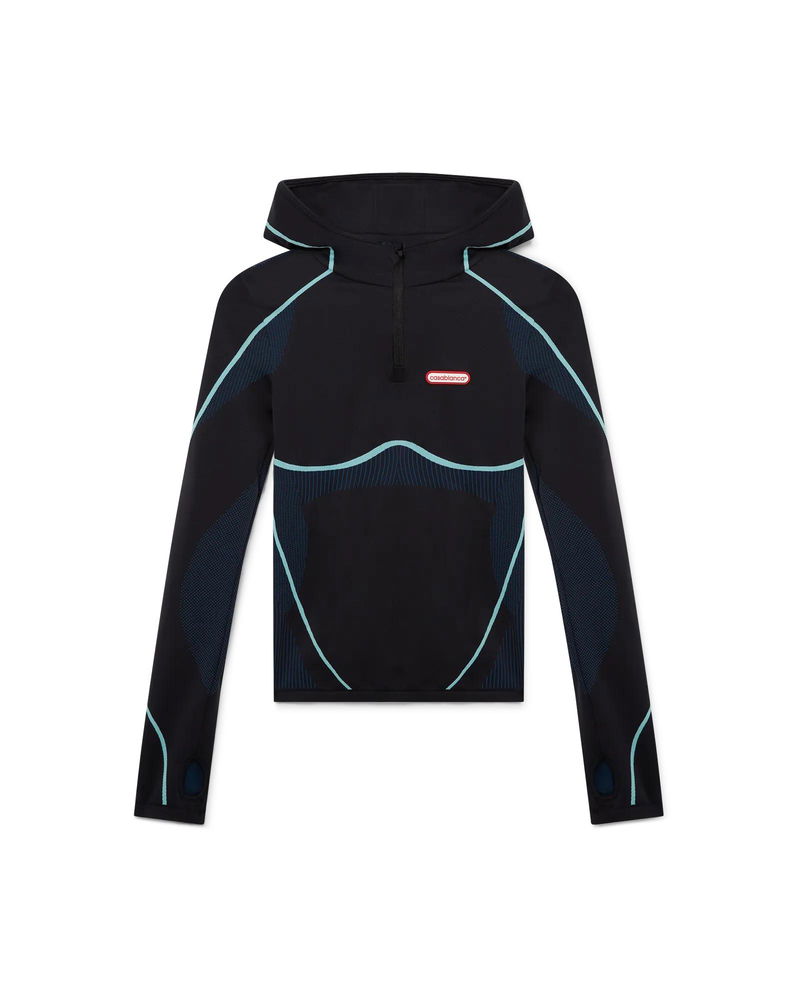 The seamless hooded long-sleeve top is a sportswear-inspired design featuring the house's interlocking CC logo, crafted from a stretch fabric. Completed with rib panel details.