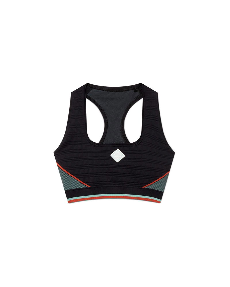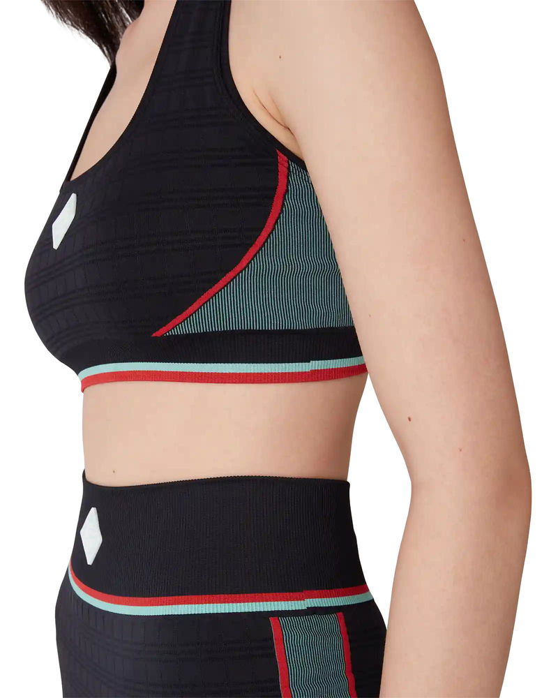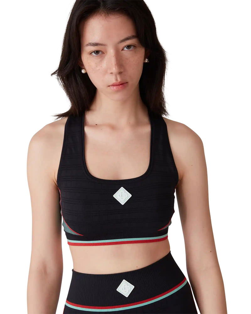 The seamless sports bra is a sportswear-inspired design crafted from a seamless rib stretch fabric. Completed with an elasticised band, a racer back, featuring the house's diamond logo at its centre, and panel detail.