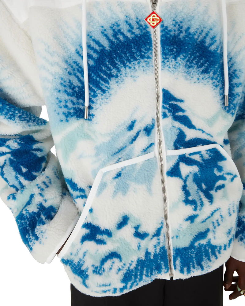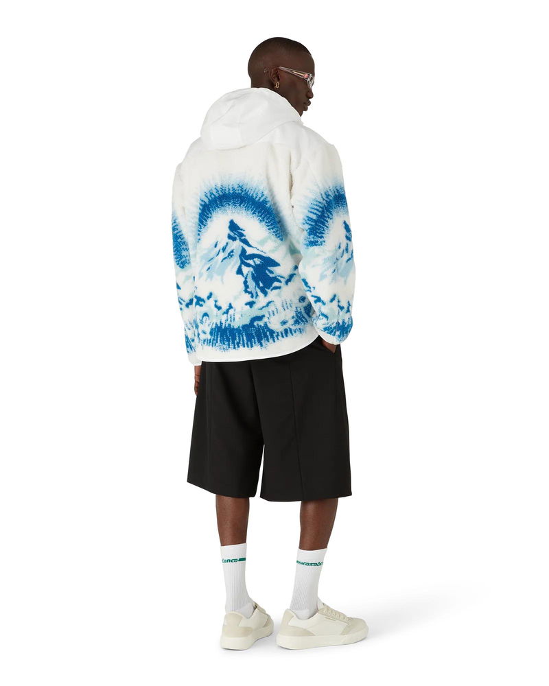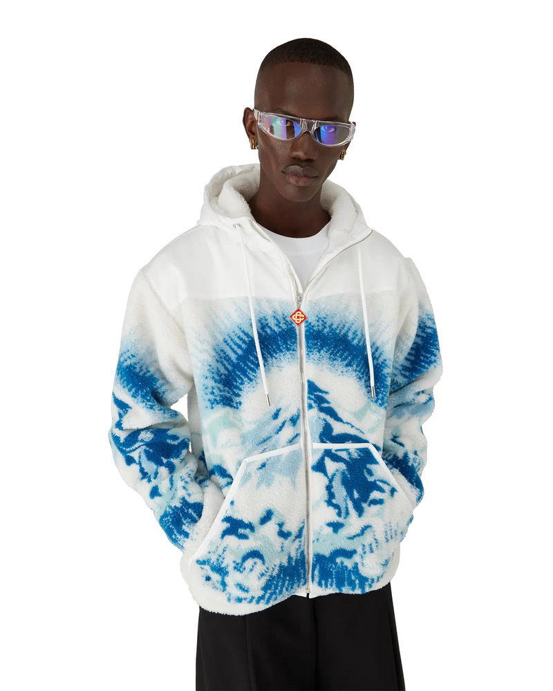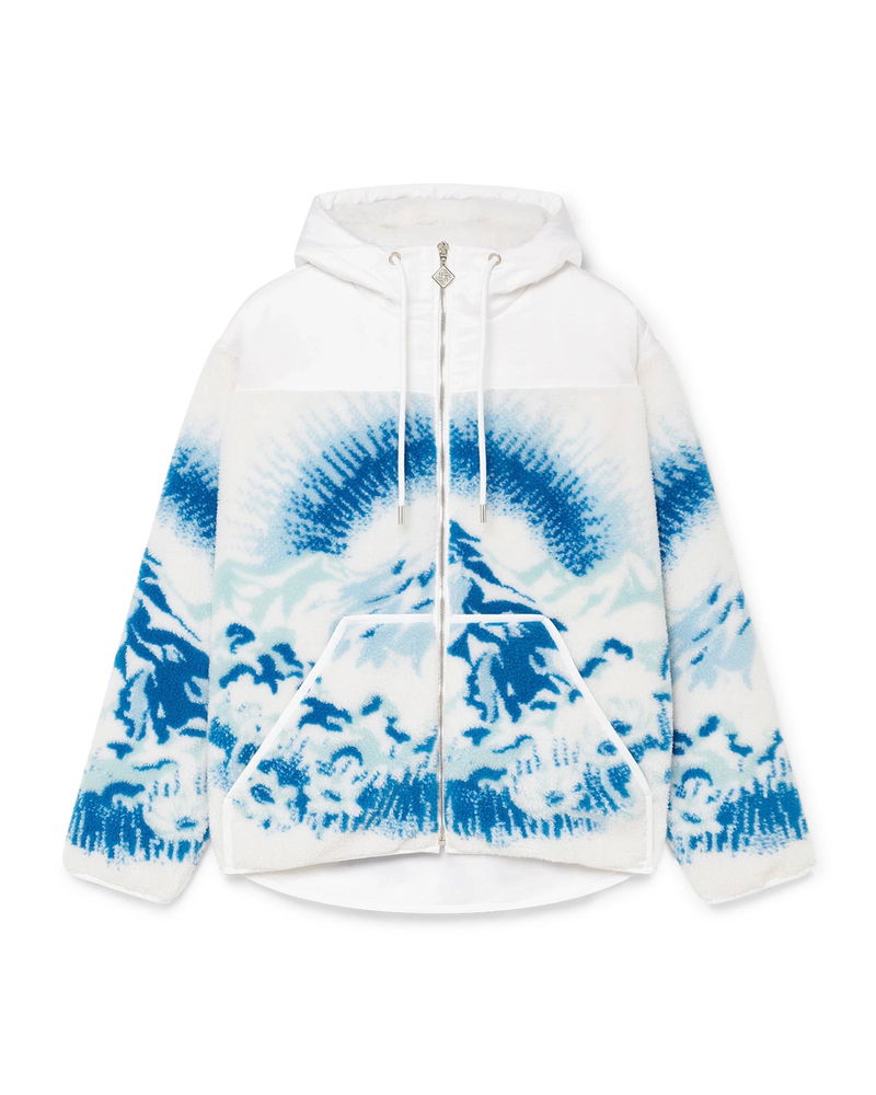 The ski jacket is a refined outerwear design crafted from recycled polyester fleece in white, inspired by the monolithic peak of the mountain top. Like cut crystal breaking the soft blue hued gradient of the clear morning sky, the design evokes alpine elegance. Completed with viscose lining and a relaxed fit silhouette. Fleece fabric Composition: 100% recycled polyester Lining: 100% viscose Colour: white Specialised dry clean only Made in Portugal Relaxed fit The model is 187cm/6'1 and is wearing a size M Exclusive to casablancaparis. com, Paris Flagship store and selected retailers Ski Landscape Fleece Jacket in Blue, Size XS by Casablanca Paris