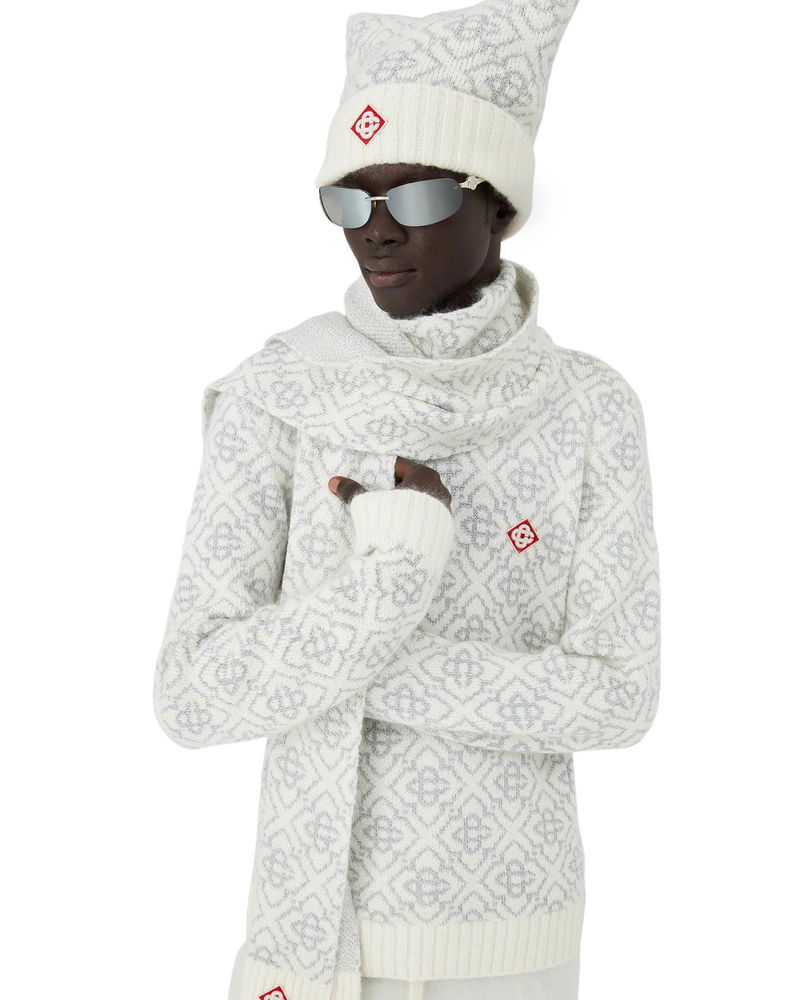 The ski scarf is a refined design crafted from mohair fabric in white, inspired by legendary powder snow in Japan's remote mountain villages. Evoking ice crystals on paper lanterns and snow-laden countryside paths, the design channels après-sport elegance. Monogram rib knit fabric Composition: 100% merino wool Colour: white Specialised dry clean only Made in China The model is 176.5cm / 5'9.5 Exclusive to casablancaparis. com, Paris Flagship store and selected retailers Ski Monogram Mohair Scarf by Casablanca Paris