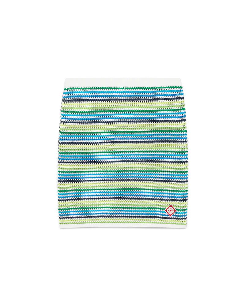 The stripe skirt is a mini style with a fitted silhouetted, featuring a stripe pattern throughout. Completed with the house's signature diamond logo, a ribbed elasticised waistband, and ribbed hem detail. Designed to be worn with its matching stripe polo shirt.