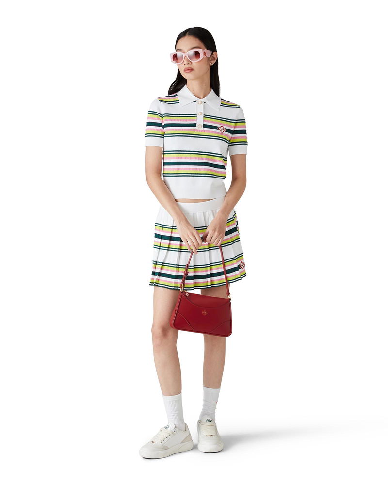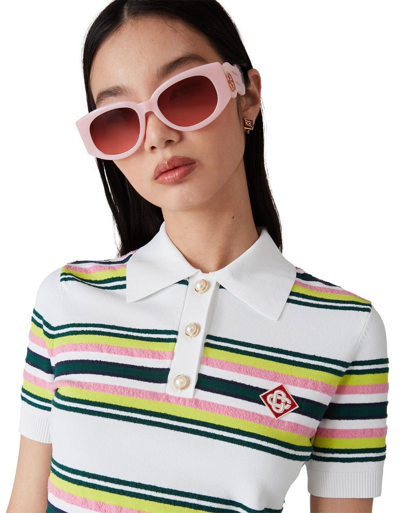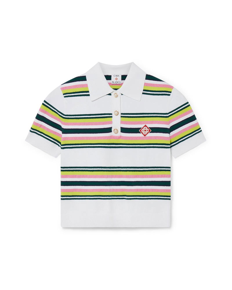 The stripe polo shirt is a short-sleeve design crafted from stripe knitted fabric featuring the house's signature diamond logo.