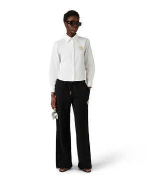 Pearl Diamond Patch Long Sleeve Cotton Shirt