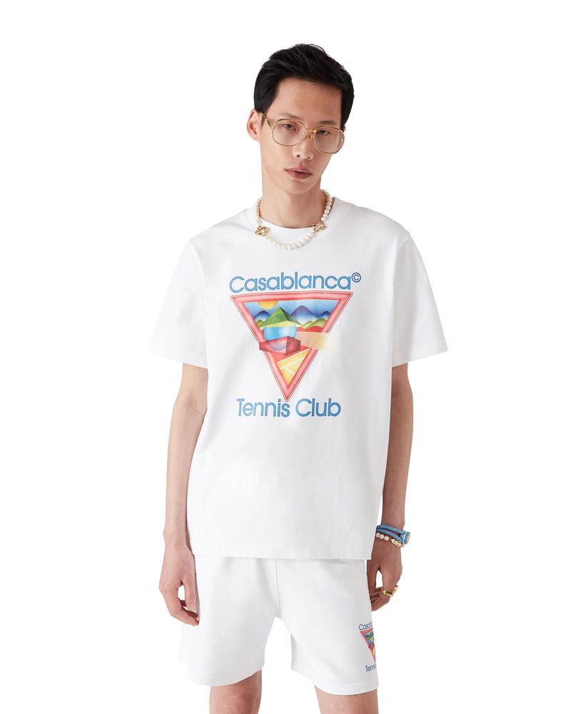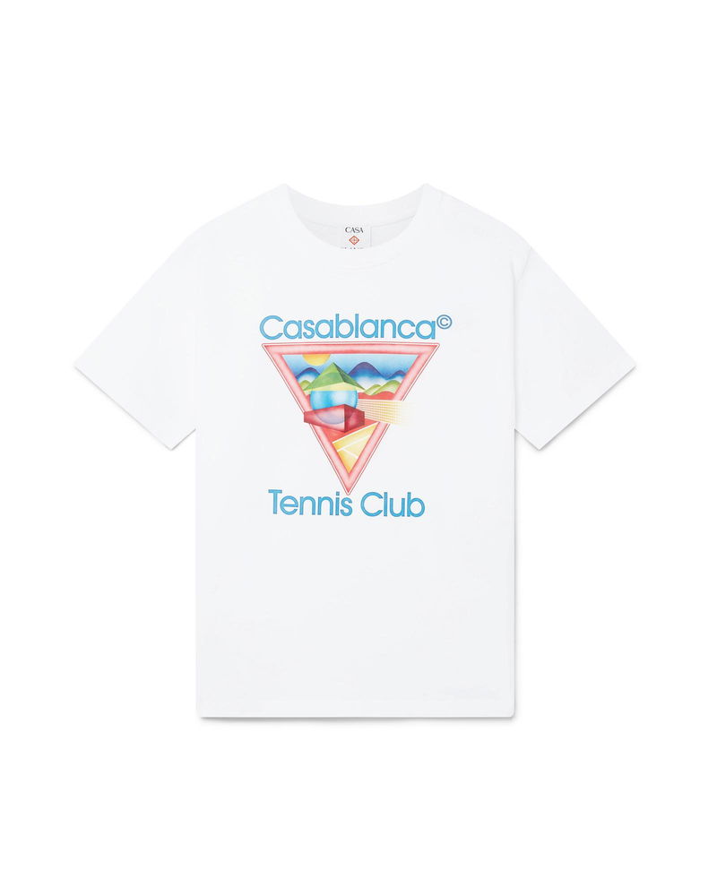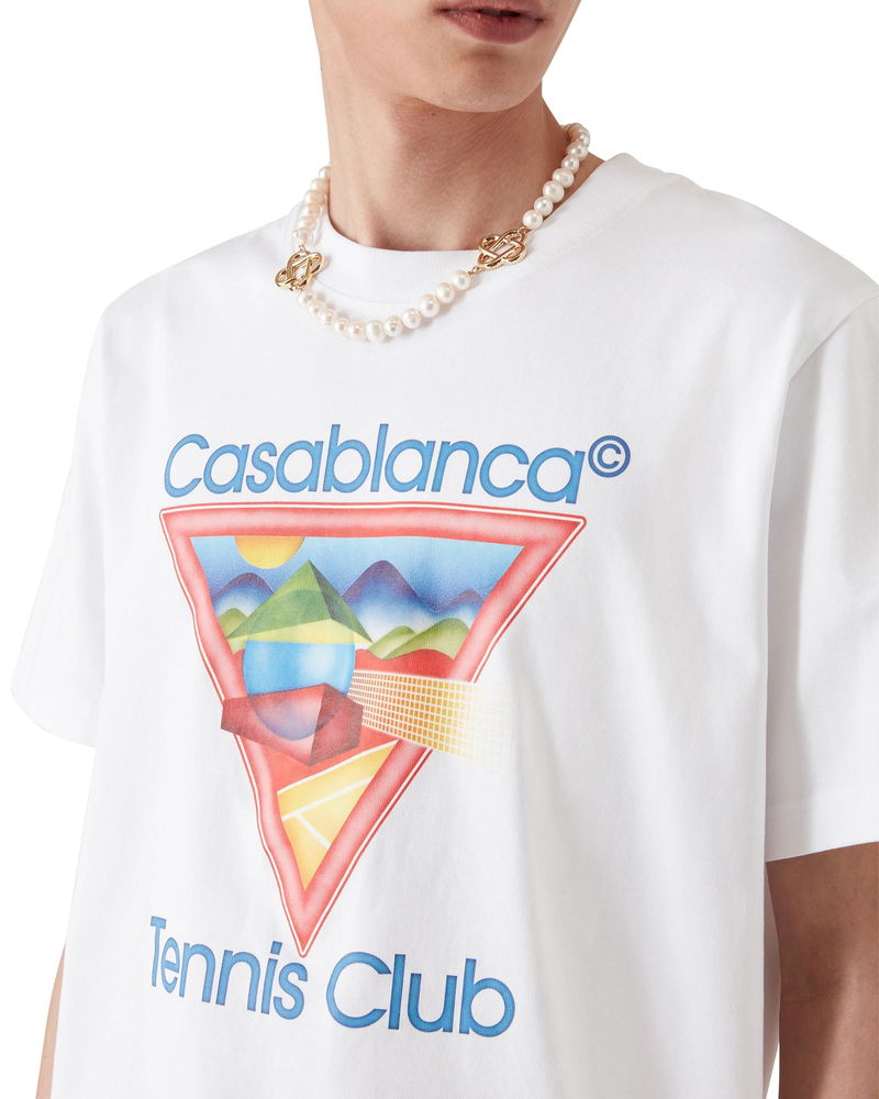 The Tennis Club t-shirt is a short-sleeve printed design featuring seasonal artwork using our classic layout but with traditional Japanese art, making it a very strong storytelling piece - a beautiful way to merge artistic styles - crafted from organic cotton. Completed with a classic crew neck. Printed cotton fabric 100% organic cotton Colour: white Delicate machine wash Made in Portugal Relaxed fit The model is 187cm/6'1 and is wearing a size M Please note our t-shirt sizing has been updated from SS25, we advise choosing your usual size. Previous clients seeking the same fit should size down. Tennis Club Icon Short Sleeve T-Shirt, Size XS by Casablanca Paris