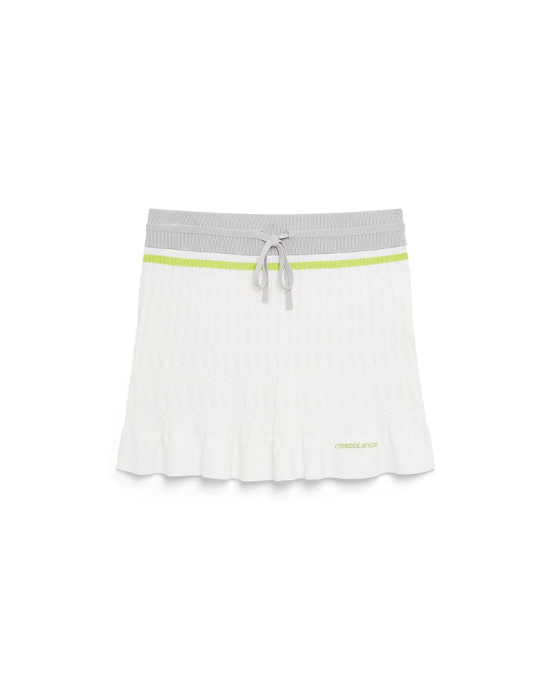 The tennis mini skirt is a knitted design featuring the house's Casablanca logo.