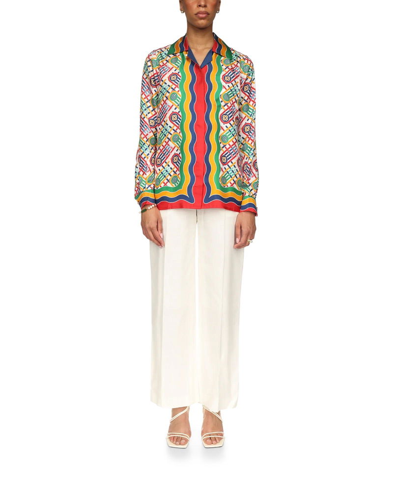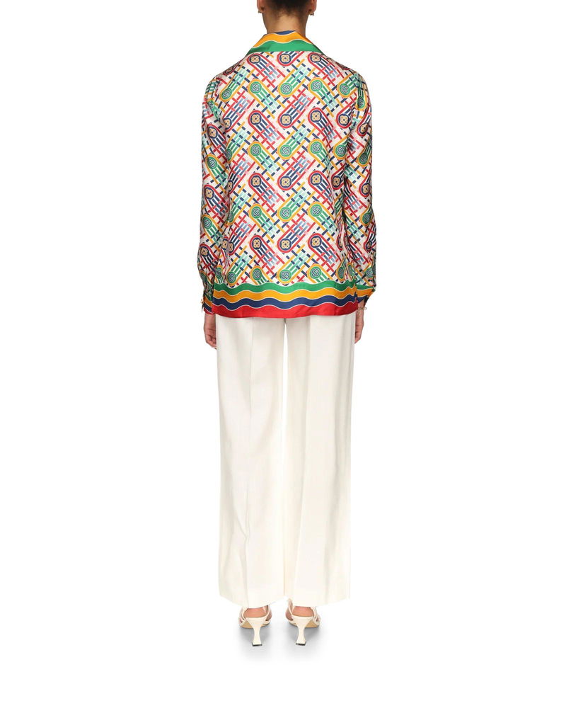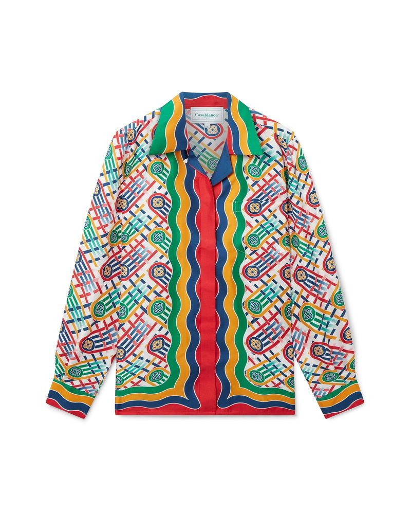 Women's Tennis Monogram long sleeve silk shirt features the house's signature artwork reinterpreted for the exclusive Nordstrom capsule centred around modern tennis-inspired athleisure.