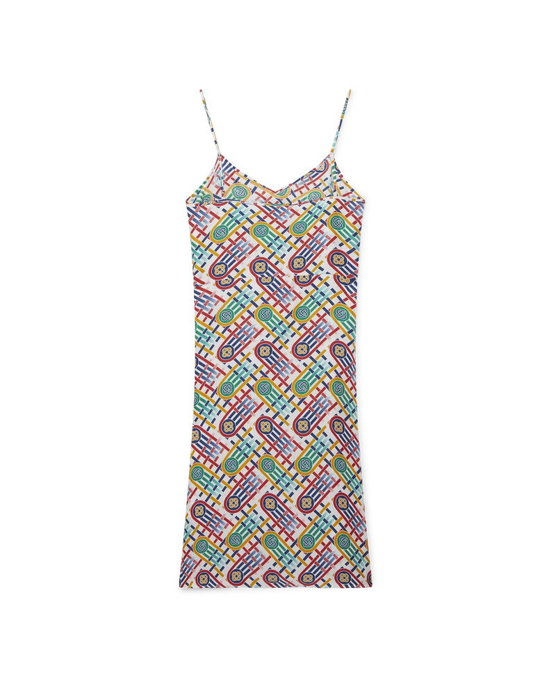 The Tennis Monogram silk slip dress features the house's signature artwork reinterpreted for the exclusive Nordstrom capsule centred around modern tennis-inspired athleisure.