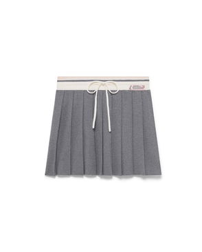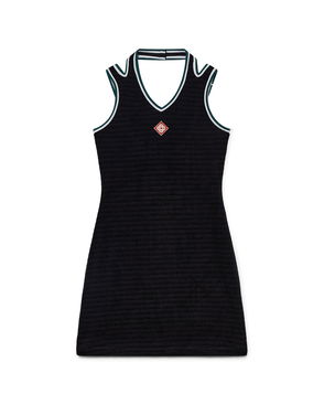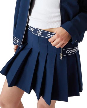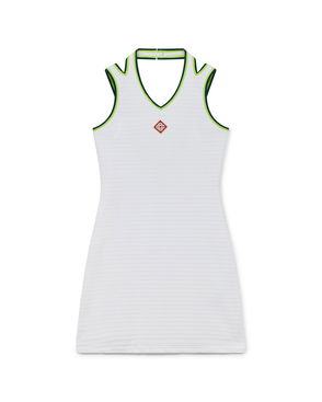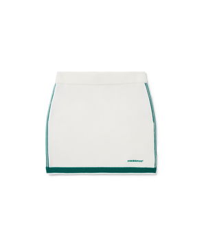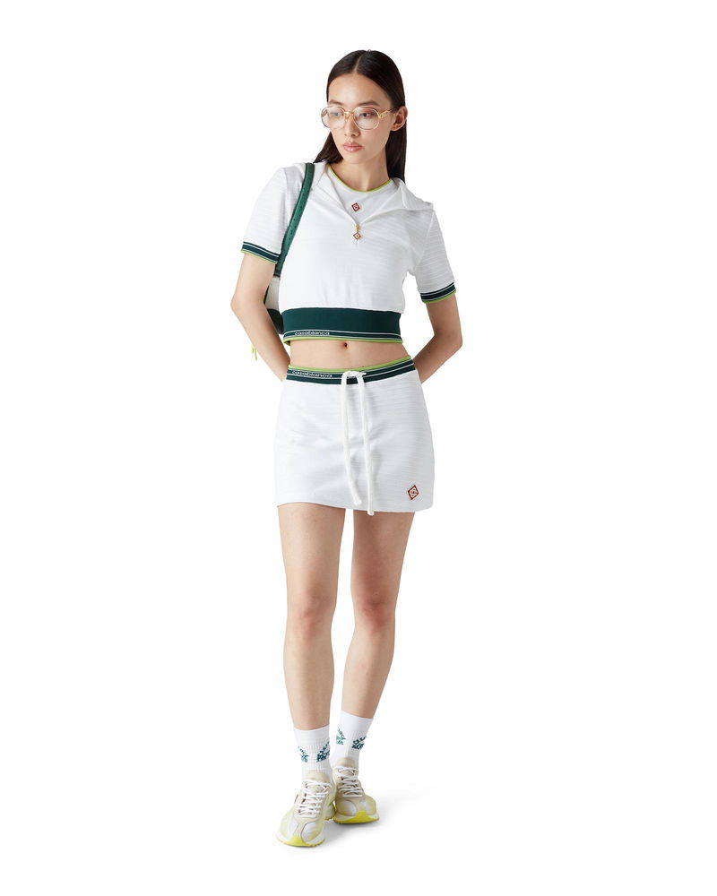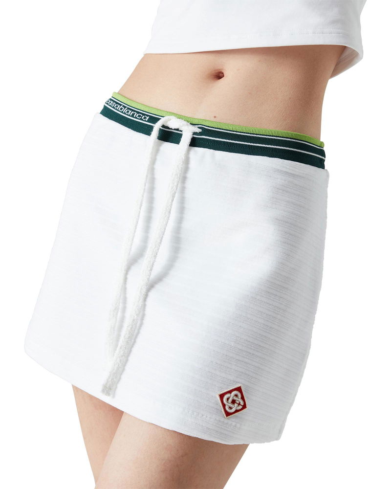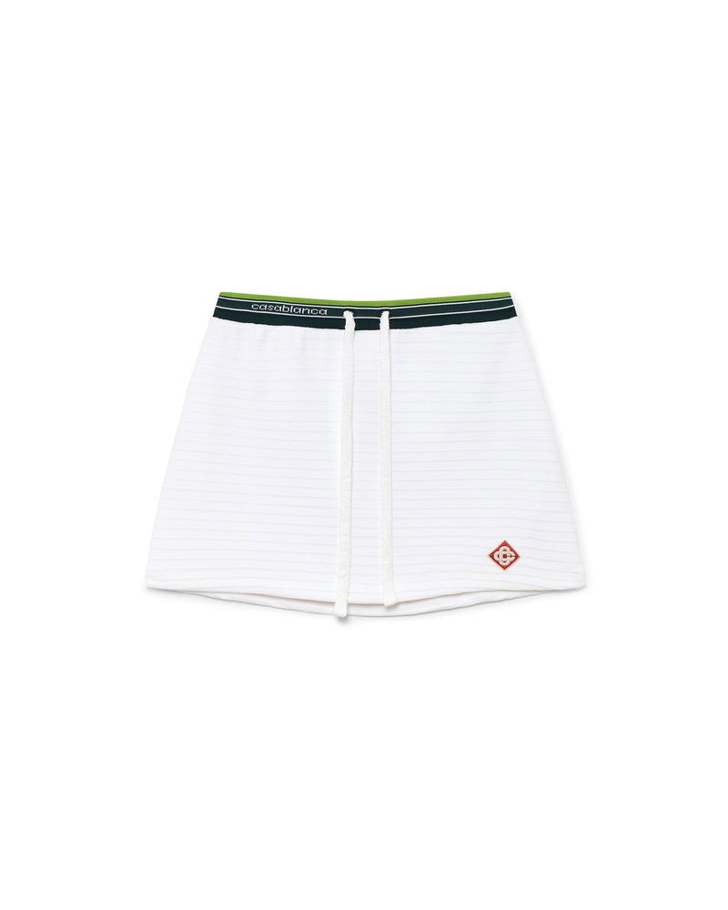 The textured velour tennis skirt is an A-line mini design crafted from velour fabric. Completed with a stripe elasticated waistband featuring the Casablanca logo, drawstring fastening, and the house's signature diamond logo on the hem.