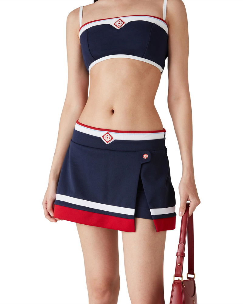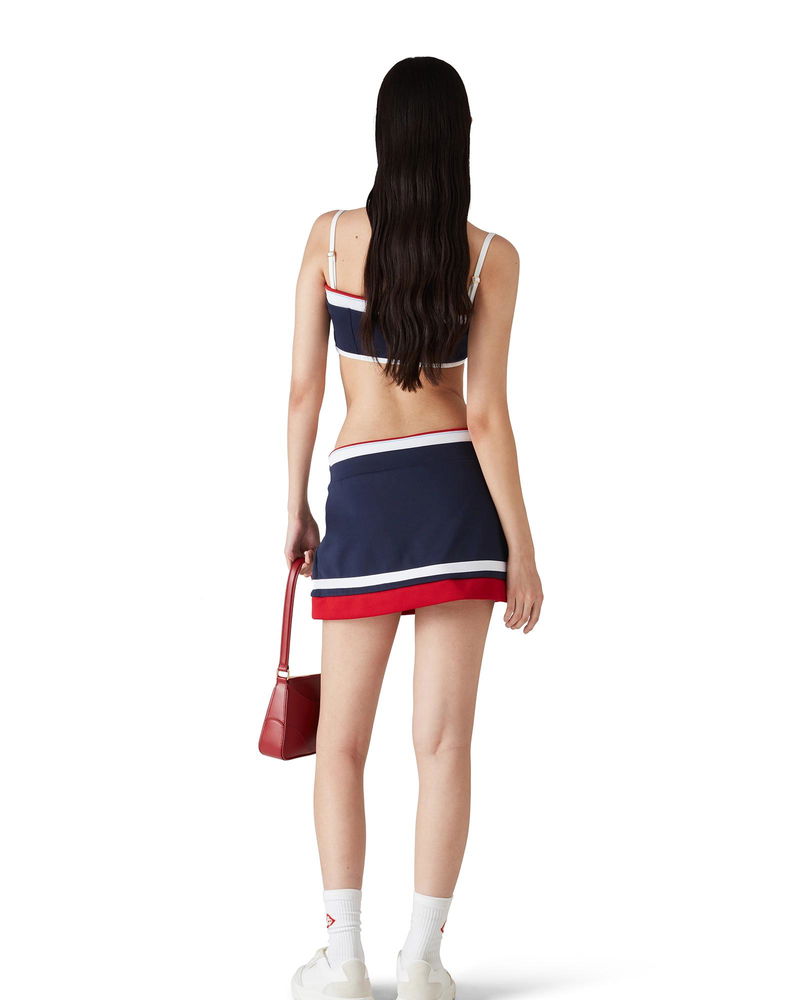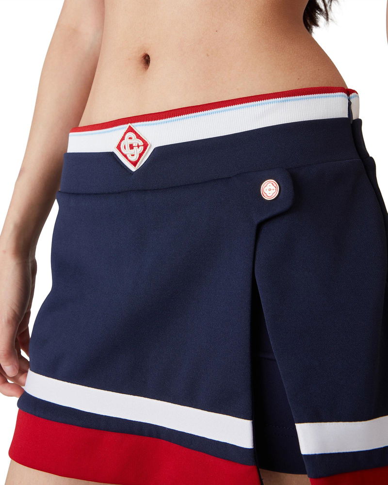 The tricot mini skirt is a short style crafted from tricot fabric. Completed with a waistband featuring the house's signature diamond logo, fitted under shorts, a slit, and side zip closure.