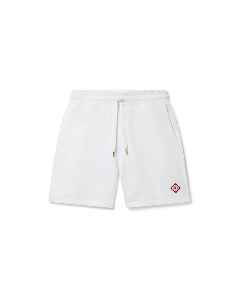 The diamond logo sweatshorts are a sportswear design crafted from organic cotton fabric, featuring the house's signature diamond logo patch. Completed with an elasticated waistband, gold-tipped drawstring fastening, and side and back pockets. Cotton fabric 100% organic cotton Colour: white Delicate machine wash Made in Portugal Fits true to size, take your regular size White Diamond Logo Sweatshorts, Size XS by Casablanca Paris