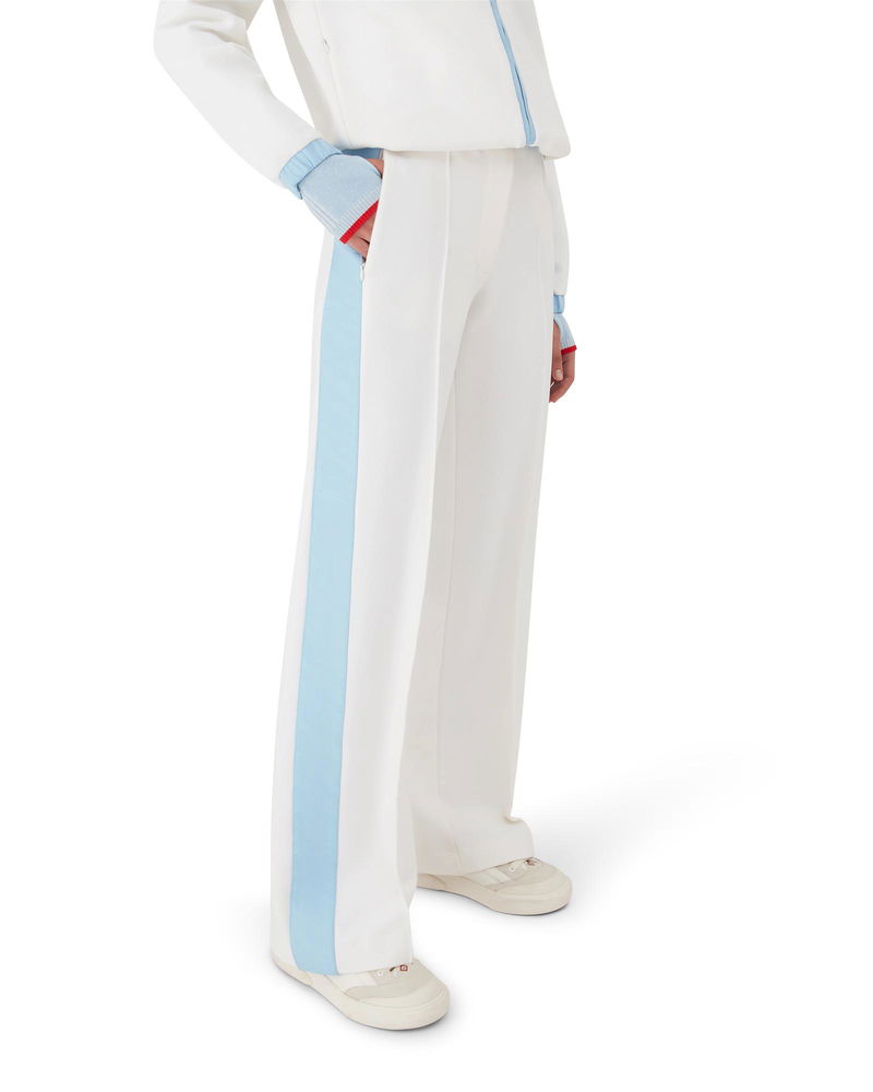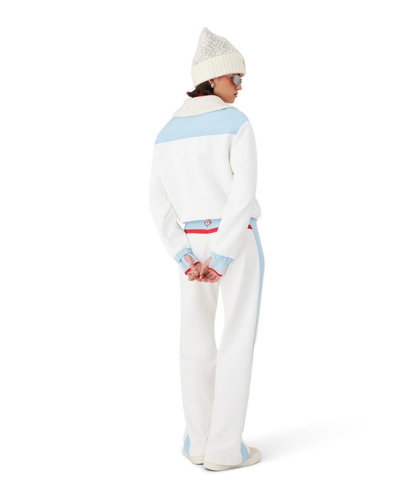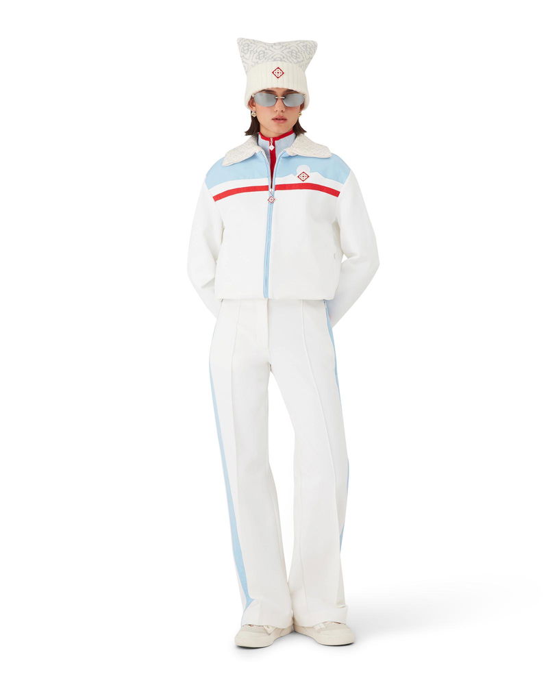 The ski trousers is a refined après-sport design crafted from technical dry fabric in white, inspired by crystalline purity of Japan's alpine countryside.