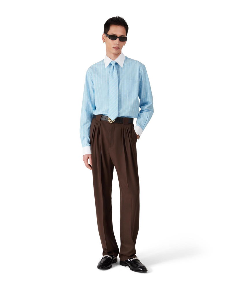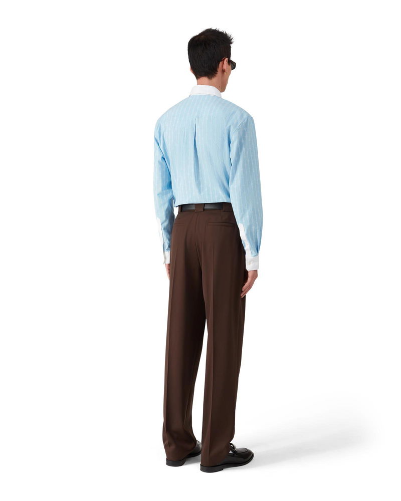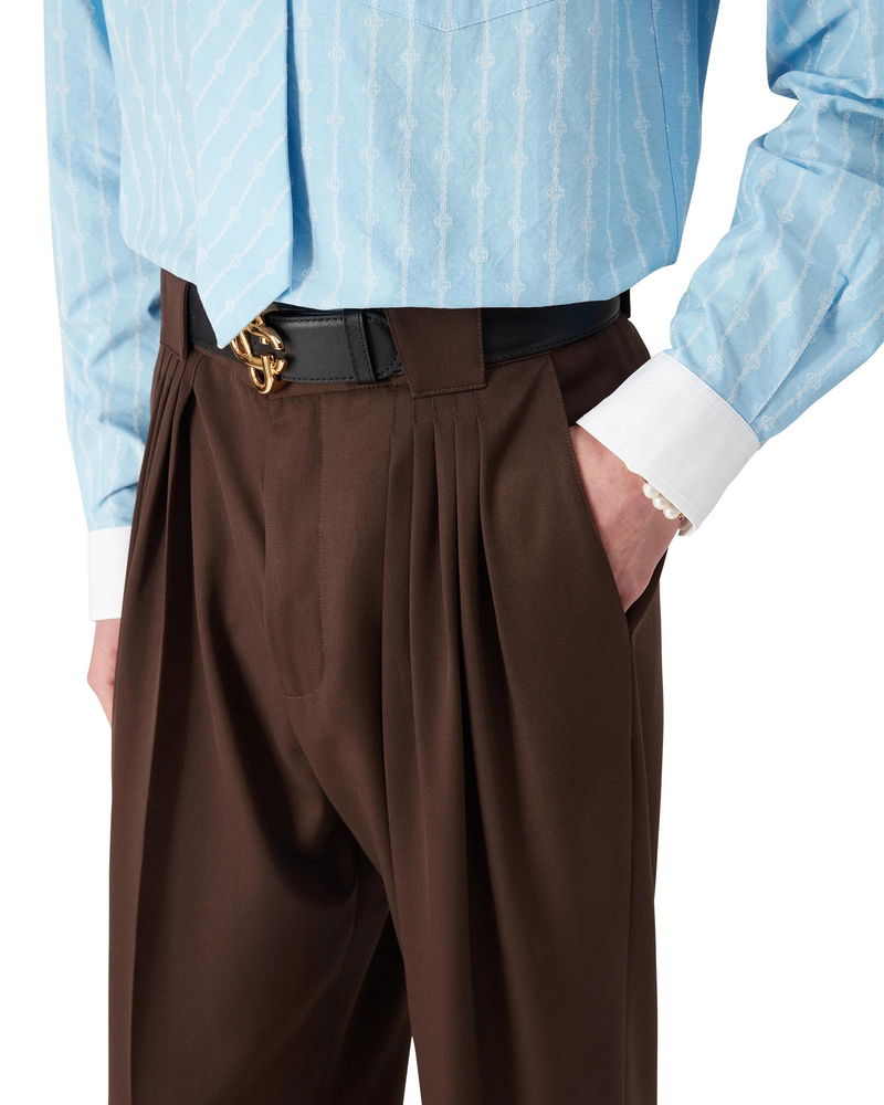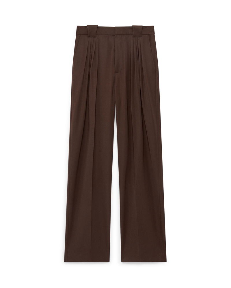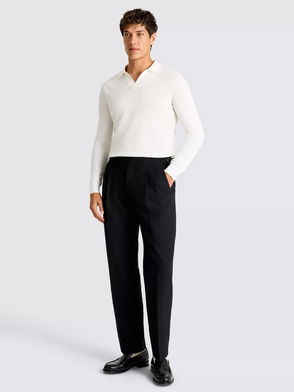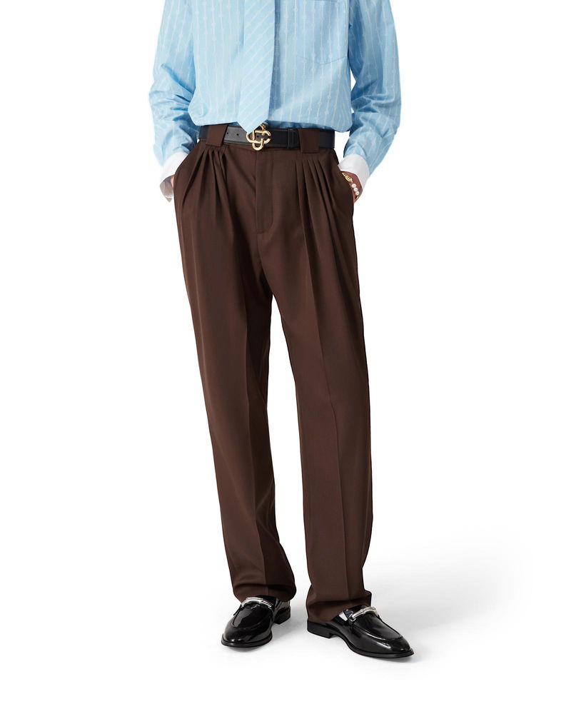 The wool five-pleat trousers are a tapered leg design crafted from virgin wool and feature a cotton blend lining. Completed with a zip closure, five pleats at the front, slanted front pockets, welt back pockets with a small box pleat, and wide belt loops. Wool fabric Main: 100% virgin wool Lining: 52% viscose 48% cotton/li> Colour: black Specialised dry clean only Made in Portugal The model is 187cm/6'1 and is wearing a size M Wool Five Pleat Trousers, Size 48 by Casablanca Paris