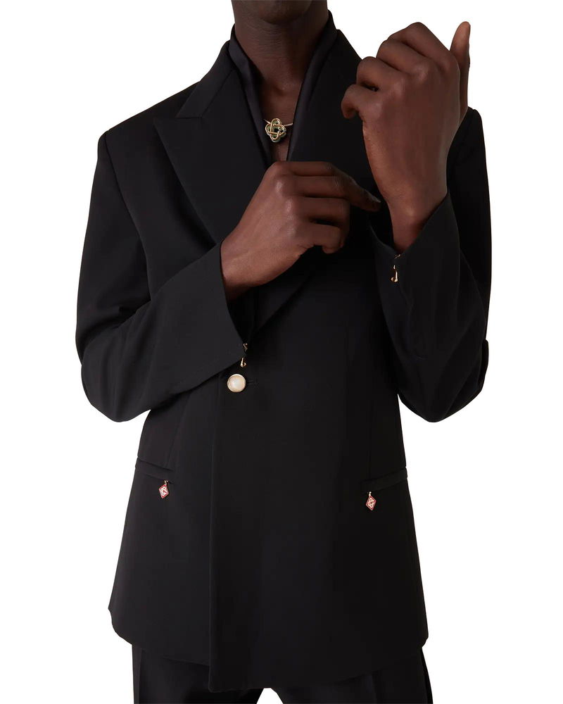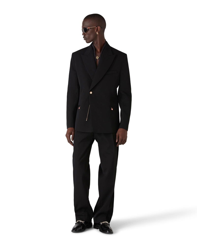 The wool tailoring pleated trousers are a straight-leg design crafted from tailoring fabric. Completed with front pleats, zip closure, slanted front pockets, a lining, belt loops, welt back pockets, and viscose panel down the sides. Wool tailoring fabric Main: 100% wool Lining: 52% viscose 48% cotton Colour: black Specialised dry clean only Made in Portugal Relaxed fit The model is 187cm/6'1 and is wearing a size M Wool Pleated Trousers, Size 46 by Casablanca Paris