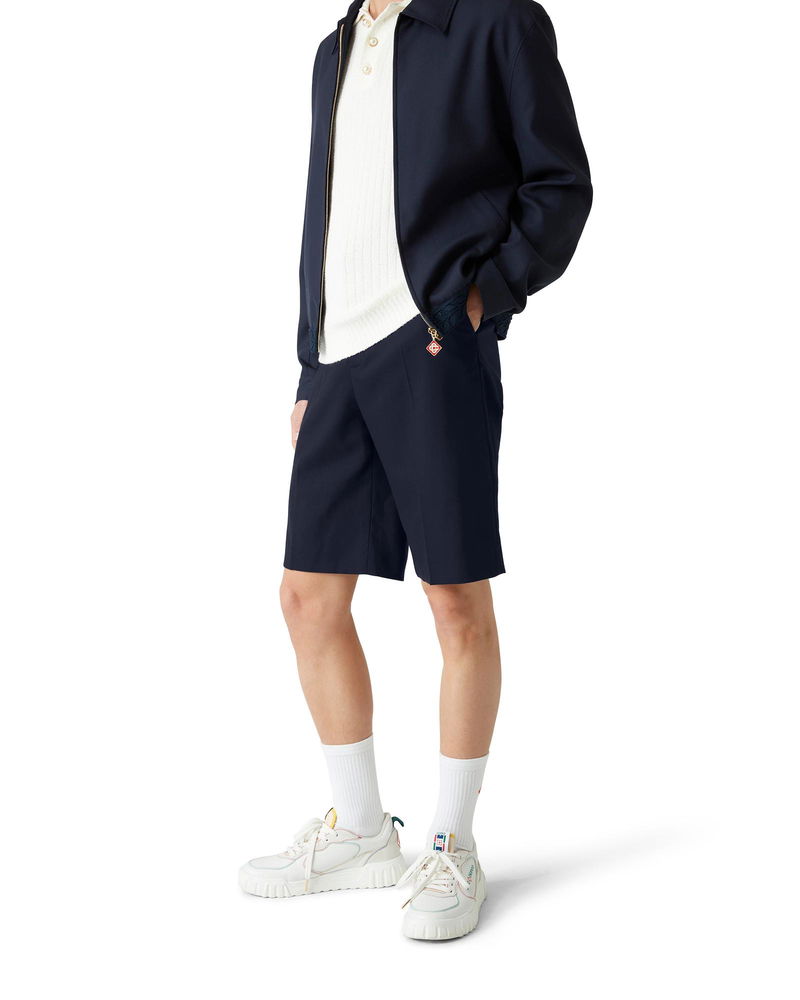 The wool tailored shorts are crafted from virgin wool fabric and feature a cotton blend lining. Completed with belt loops, a zip closure, slanted side pockets, a welt back pocket and turn-up hems. Virgin wool fabric Main: 100% virgin wool Lining: 52% viscose 48% cotton Colour: navy Specialised dry clean only Made in Portugal Fits true to size, take your regular size The model is 185cm/6'1 and is wearing a size M Wool Tailored Shorts, Size 44 by Casablanca Paris