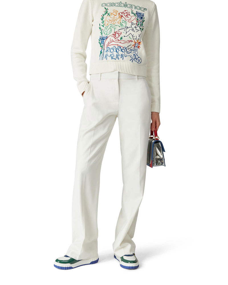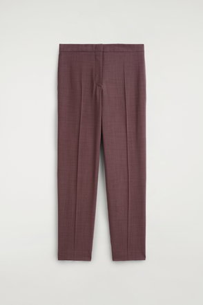The wool tailored trousers are a slim design crafted from virgin wool fabric and feature a cotton blend lining.