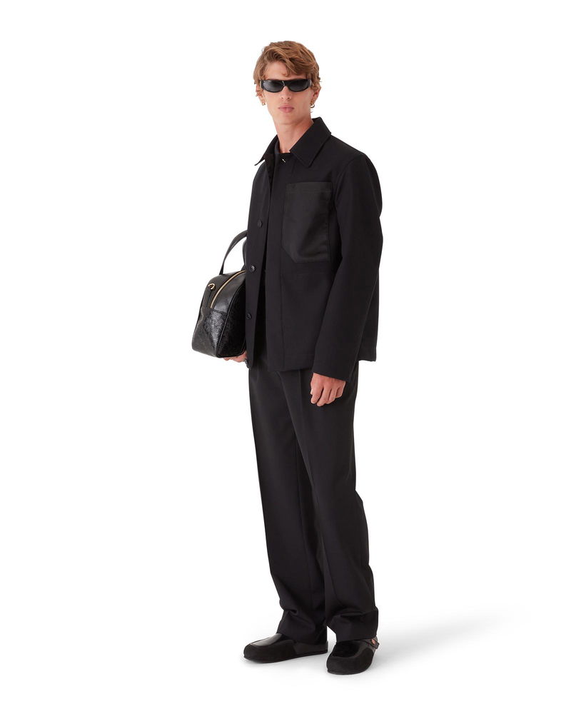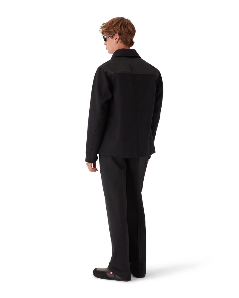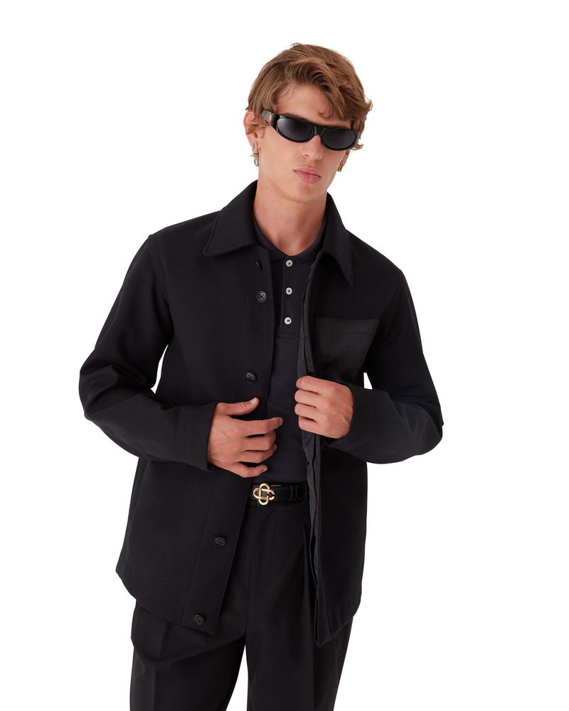 The wool workwear jacket is a long-sleeve relaxed design crafted from technical wool fabric. Completed with contrast breast pocket and yoke featuring the house's Honeydew logo repeat, a collar, button closure, and interlocking CC logo corozo buttons.