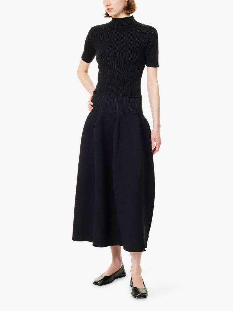 CFCL - Clothing For Contemporary Life - embodies simplicity, modesty, and responsibility. Using innovative low-waste 3D computer-developed knitwear techniques, it creates sophisticated yet easy-to-maintain tops and dresses with playful and beautiful proportions, crafted from sustainable polyester yarns.