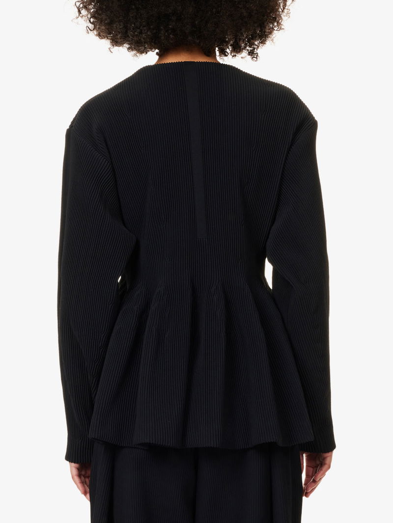 CFCL - Clothing For Contemporary Life - embodies simplicity, modesty, and responsibility. Using innovative low-waste 3D computer-developed knitwear techniques, it creates sophisticated yet easy-to-maintain tops and dresses with playful and beautiful proportions, crafted from sustainable polyester yarns.