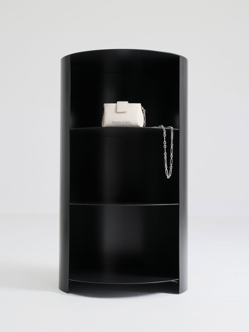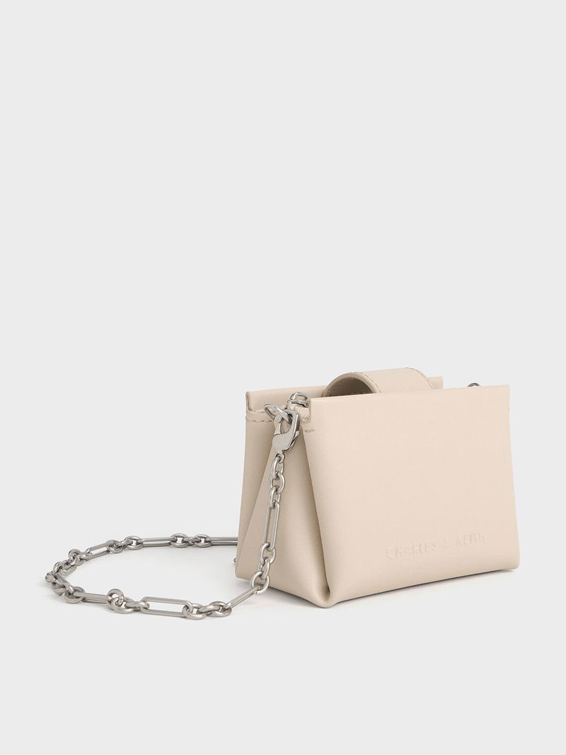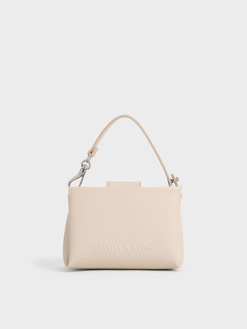 Featuring a single top handle adorned with understated silver-tone hardware, the Bosie pouch exudes delicate elegance. In a sophisticated oat white finish, it will effortlessly complement any outfit. Perfect for quick outings or a night on the town, its compact size can accommodate small essentials like your keys and lipstick with ease. The magnetic closure help keep your belongings secure yet readily accessible.