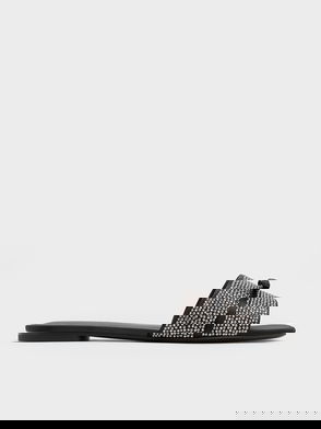 Denim Gem-Buckle Square-Toe Slide Sandals