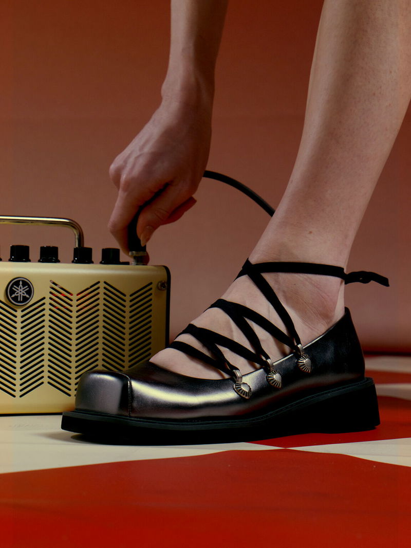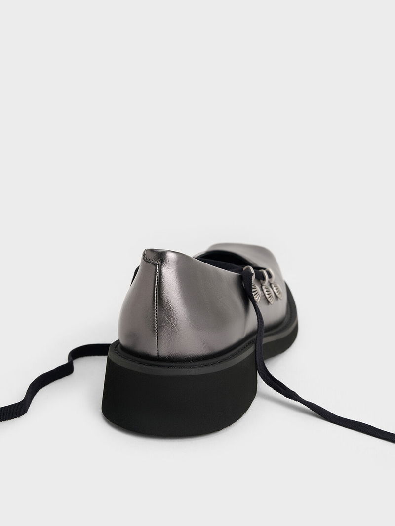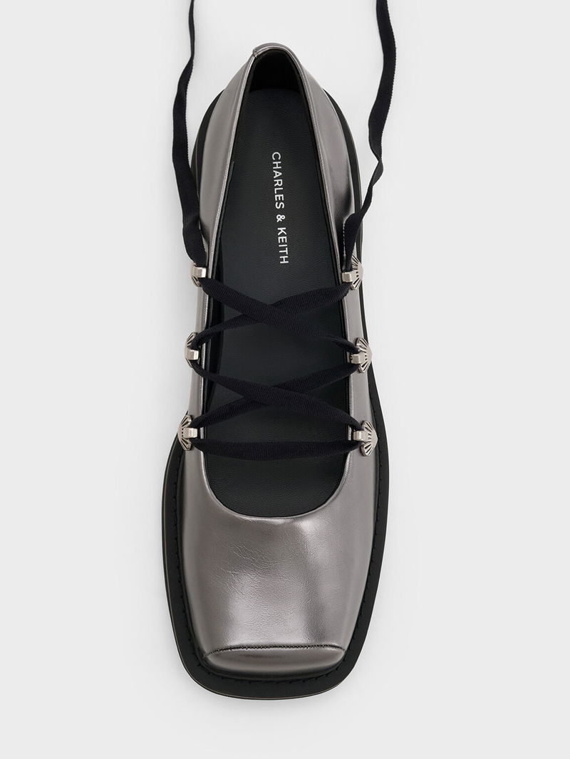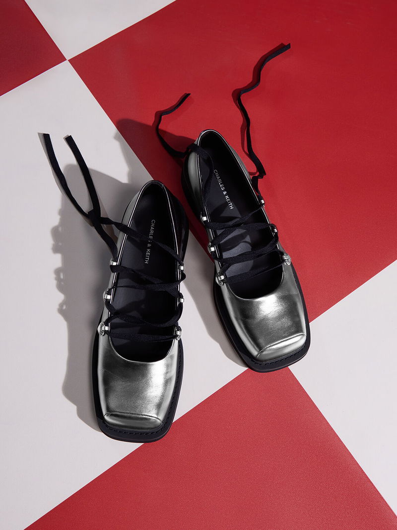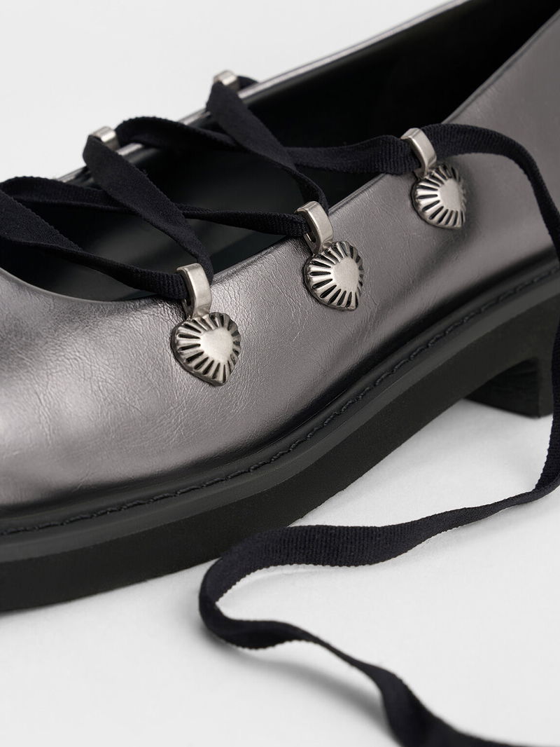Metallic Heart-Embellished Lace-Up Ballet Flats