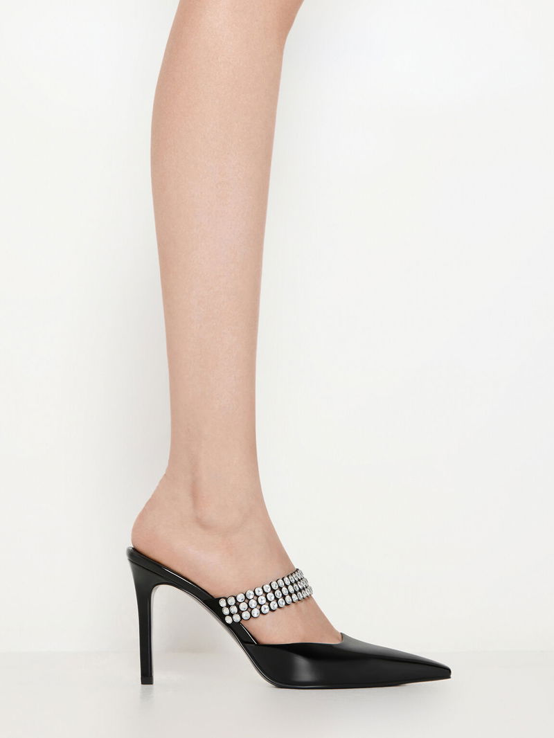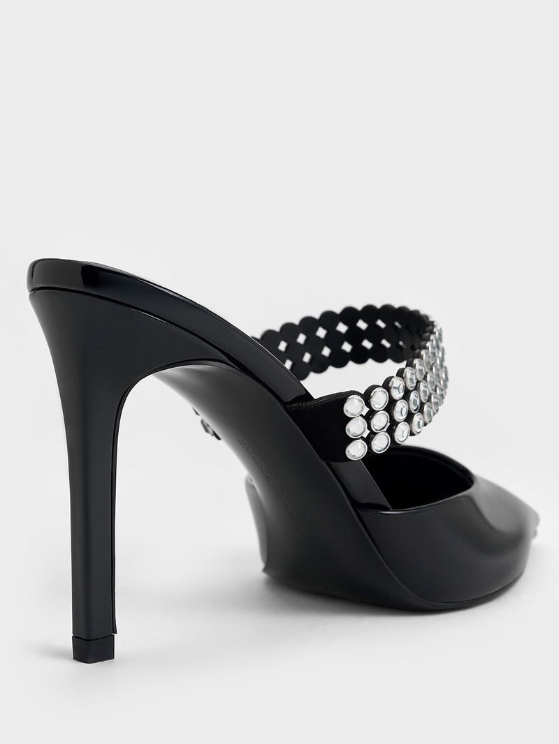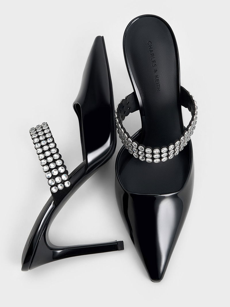 Patent Crystal-Embellished Heeled Mules
