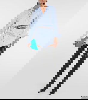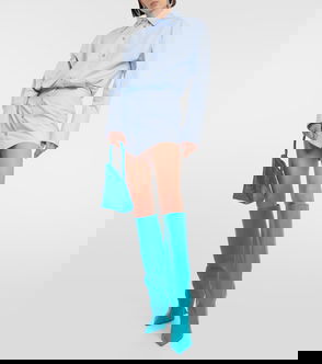 The Attico’s message is simple — it’s time to dress up. The Cheope knee-high boots are crafted in Italy from supple suede, featuring a distinctive 105 mm pyramid wedge and a sharply pointed toe.