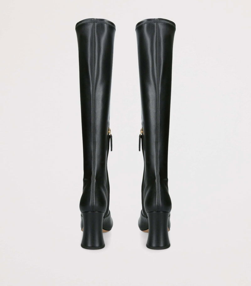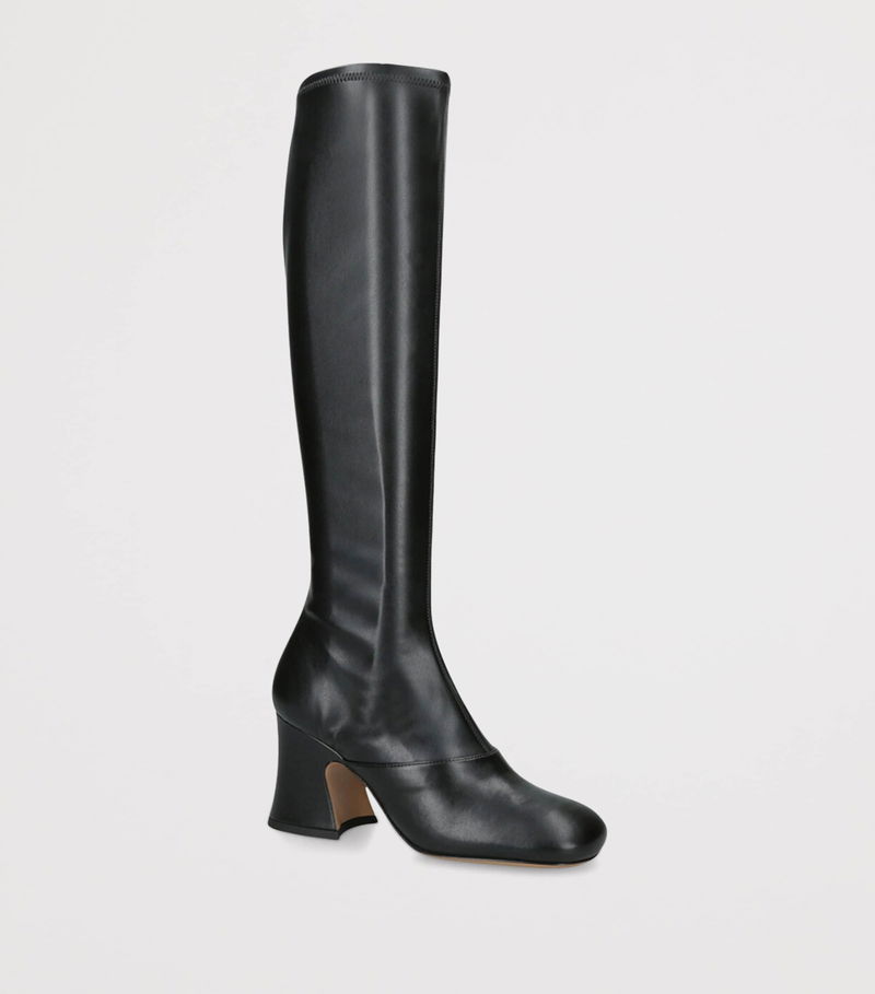 Step into sleek sophistication with Chloé's Janis heeled boots, crafted from soft leather-effect stretch fabric for a flawless, second-skin fit. Their stacked, flared heel and high tube leg create a bold silhouette, balanced by a subtle square toe for modern edge.