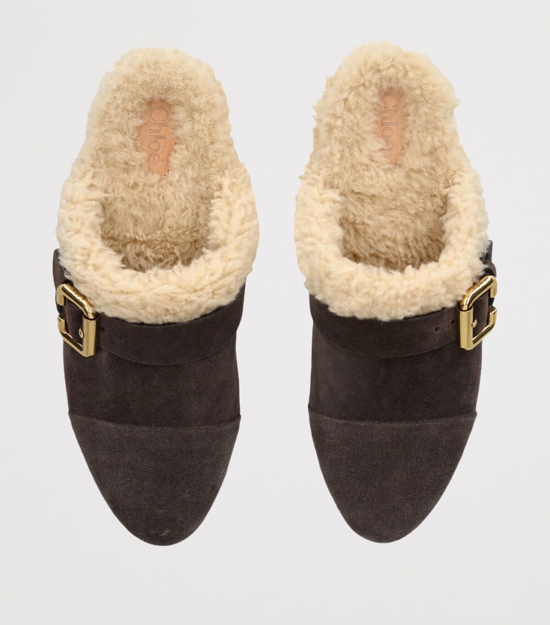 Chloé Suede-Shearling Jeannete Mules