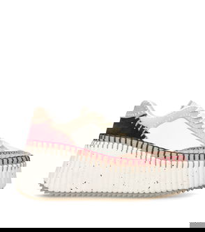 To Chloé (and its loyal legion of followers), the name Lauren is synonymous with signature scalloped trims that etch out its pumps, sandals, ballet flats - and now these trainers. As unmistakable as ever, you’ll find the wavy detail tracing the outline of their spongy rubber soles. Complementing the soft lines of the scalloped edges, the upper is shaped from sheer lace, which is woven with branding within the delicate fabric.