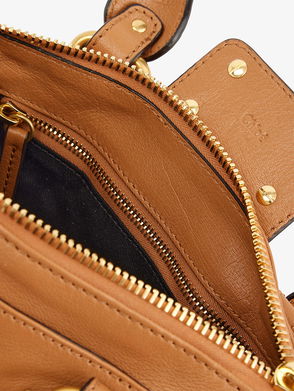 Chloé leather shoulder bag. Double top handles, branded padlock at top, detachable key and tag, all-over stud embellishment, all-over grained leather, gold-toned hardware, one main compartment, internal zip pocket and debossed branding, fully lined.