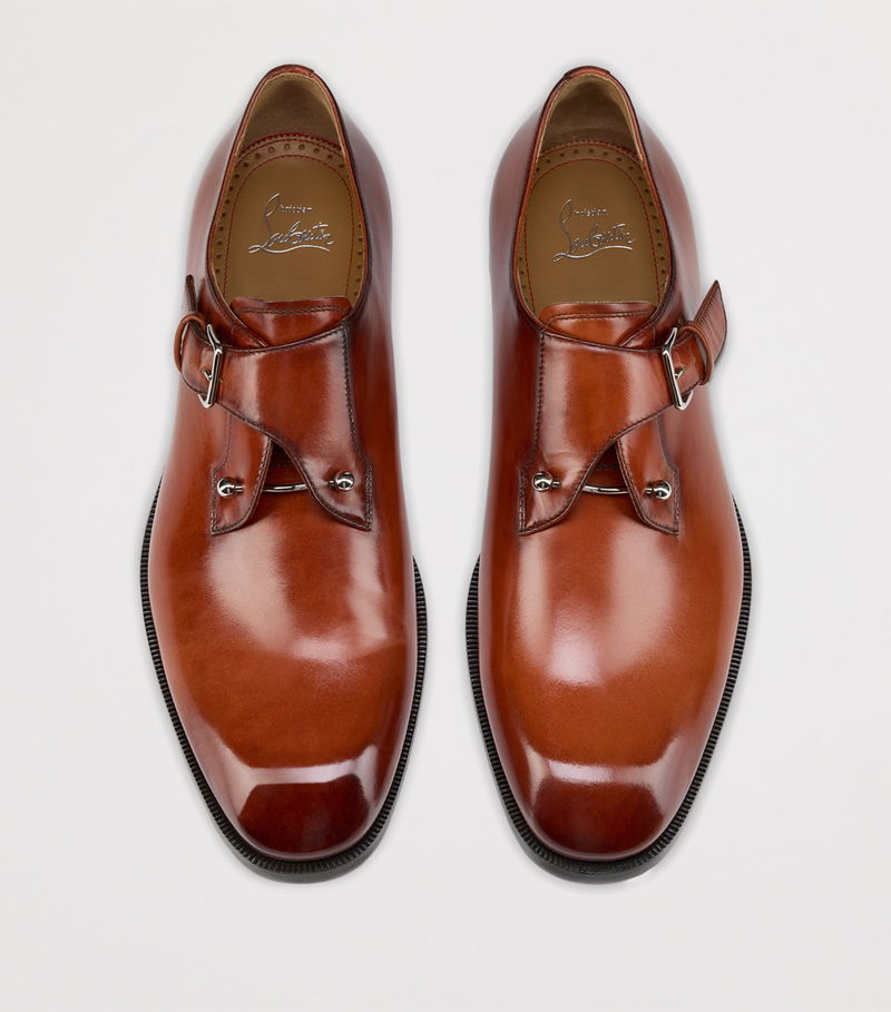 After remarking on one of his employee's lacquered red nail polish, Christian Louboutin had the idea for his most fabulous finish: the lacquered red soles that are now an iconic symbol in footwear. The leather Chambelimonk shoes are blessed with this detail, adding an eye-catching dose of high-fashion flair to their otherwise sleek silhouette.