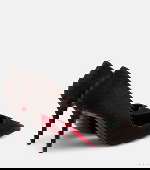 Christian Louboutin introduces a new pair of timeless pumps with the black Miss Sab silhouette. This style is covered in plush suede with softly rounded toes, and comes set on curved 55mm block heels. The label's signature red leather soles add a final touch of drama.
