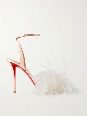 Christian Louboutin's 'Miss Z Poupi' sandals are made from lustrous satin tipped with swishy feathers that'll move and photograph beautifully. The deep red palette makes them a stunning choice for evening.