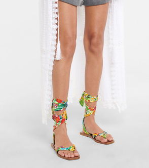 Embrace your fierce side with styles from Christian Louboutin’s Exclusive FW23 Capsule Collection for Mytheresa. Set on leather soles, the Niloo du Désert sandals feature knotted thong straps and wrap-around ankle ties in leopard-print satin.