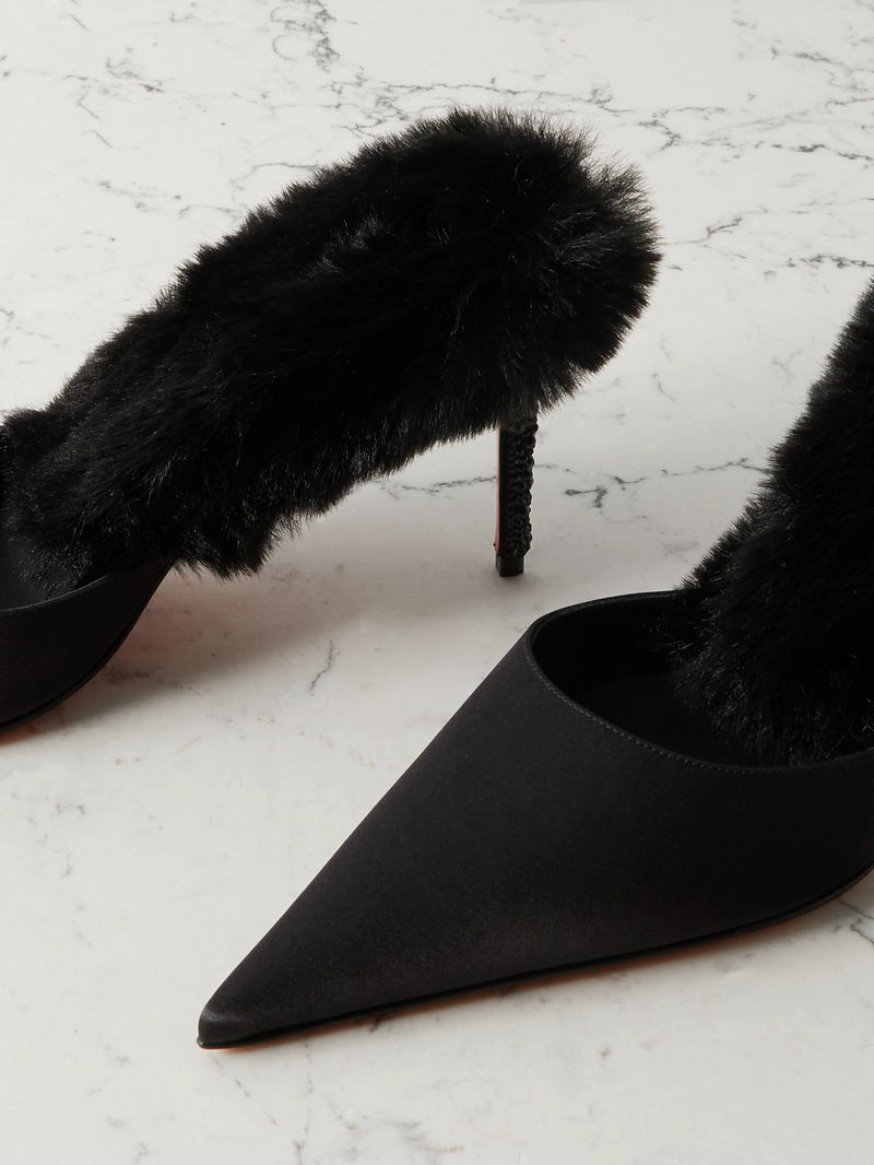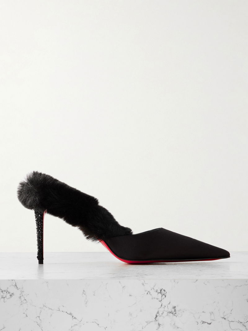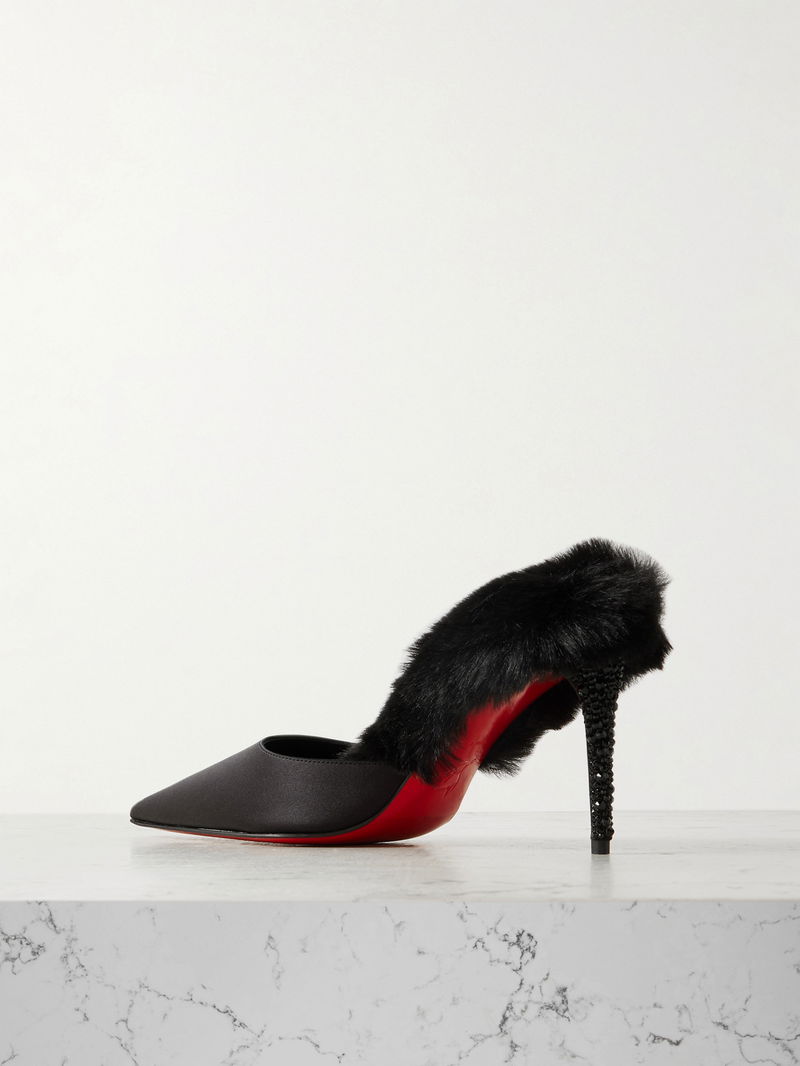 Christian Louboutin's pumps are trimmed with plush fabric that adds a little texture to your look. They're made from satin with pointed toes and 85mm stiletto heels embellished with tonal crystals. The signature red soles are coated with an 'Everlasting' lacquer for enduring vibrancy.