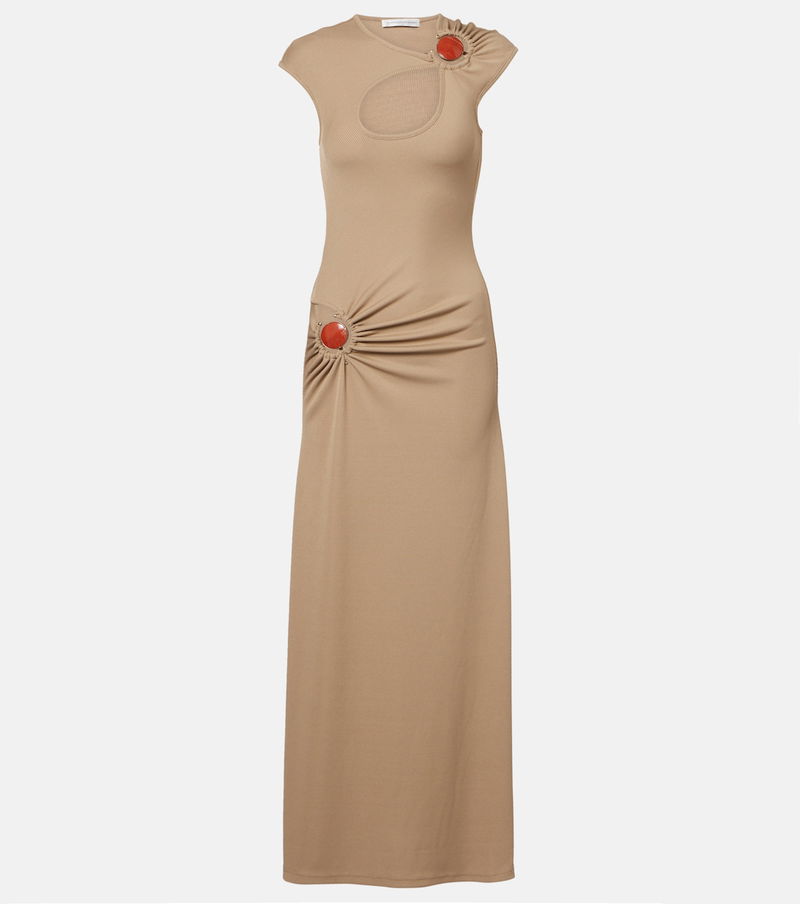 Mineral Stone Embellished Jersey Maxi Dress