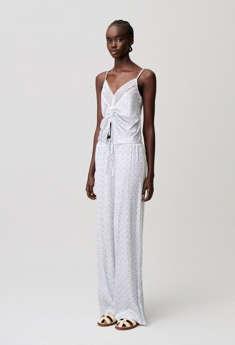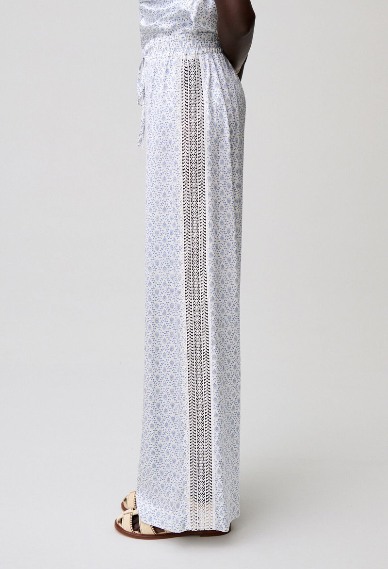 Flowing straight-leg trousers with an elasticated waist and lace insert.