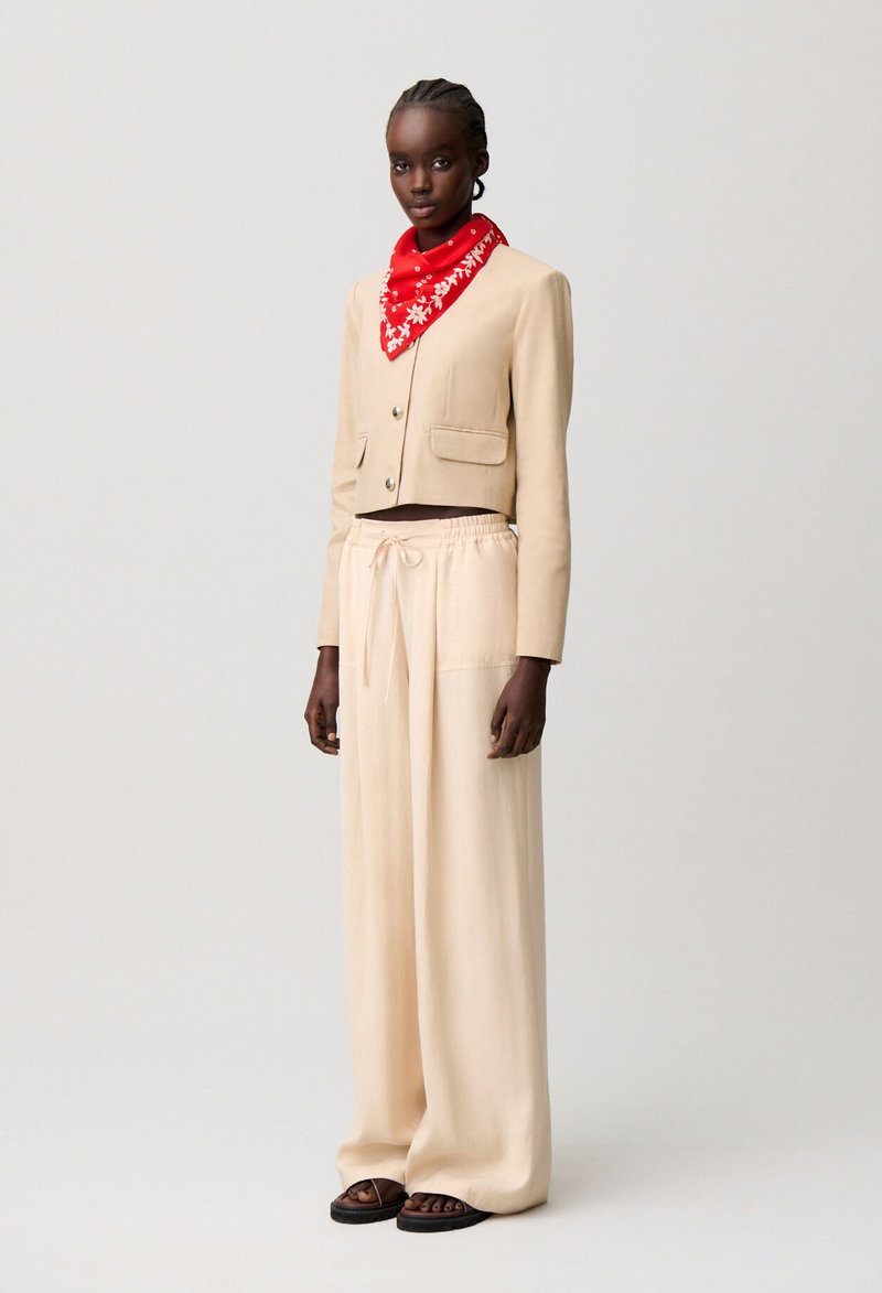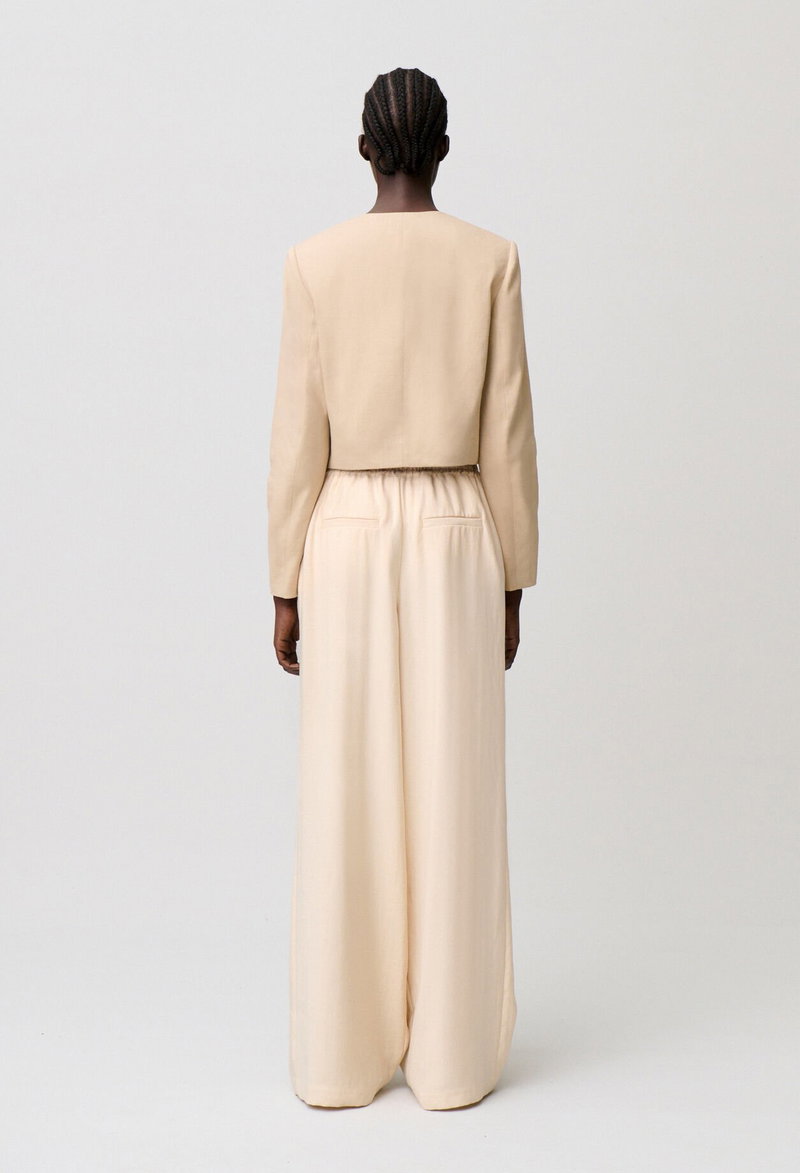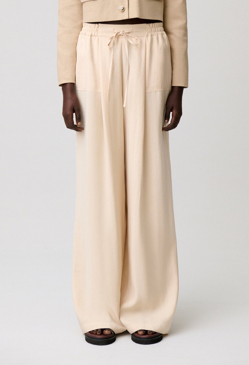 Straight wide-leg trousers with an elasticated waist and front detailing.