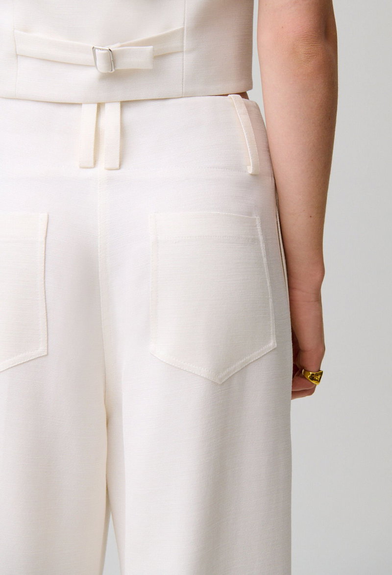 Made with at least 50% lyocell. Lyocell is made from plant cellulose. While chemicals are used in its production, it is a closed-loop process, meaning that chemicals can be extracted and waste water reused.'