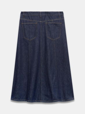 Playing with proportion, this midi skirt is shaped with an asymmetric waist that wraps across the front. It's crafted from pure cotton and features belt loops, five-pocket styling and a split at the front. The classic beige tone creates a canvas for the rest of your wardrobe.