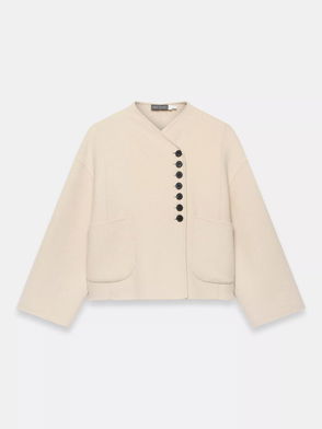 BELTED WOOL-BLEND SHAWL-COLLAR JACKET