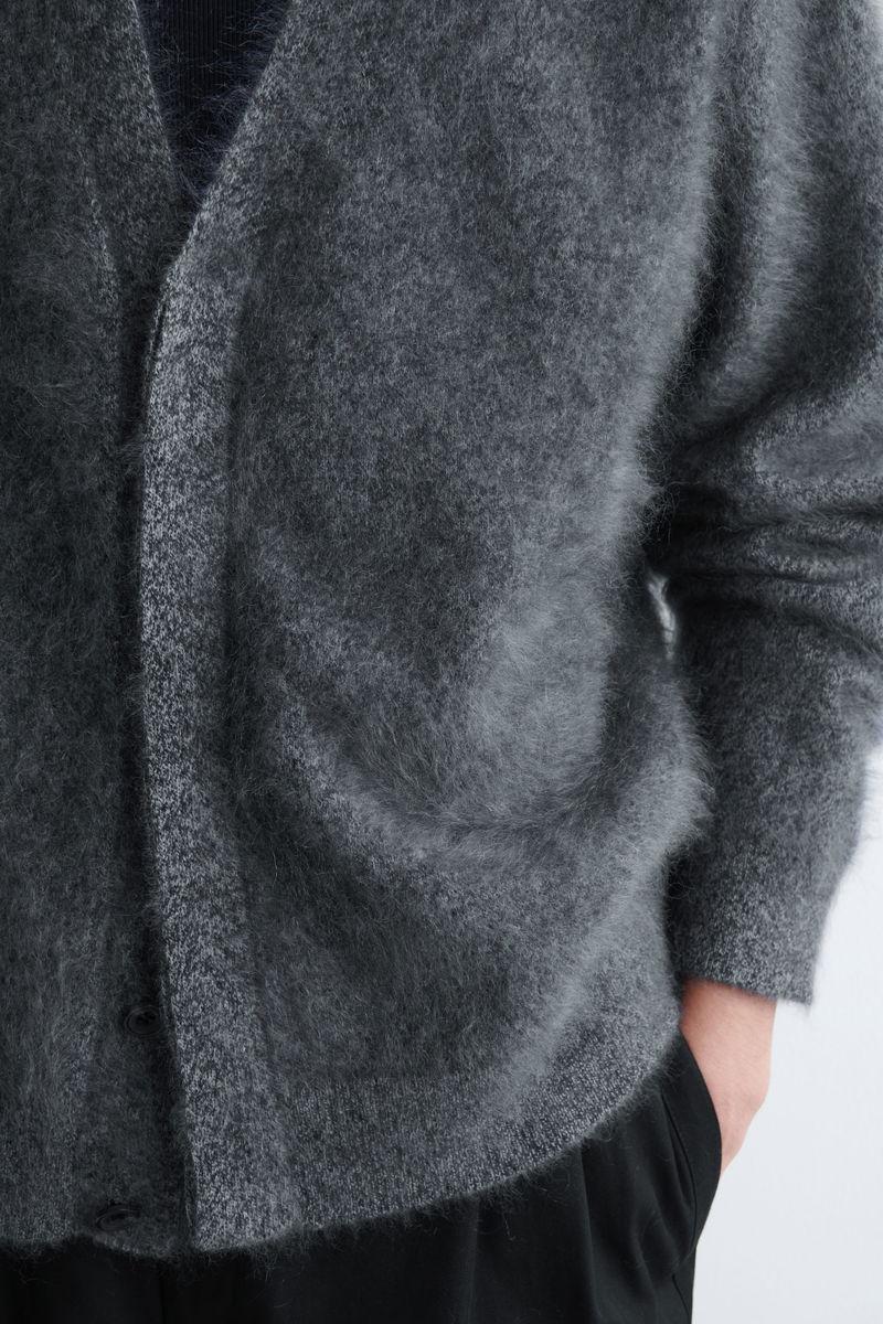 This season, dynamic textures bring rich dimension to a refined wardrobe staple: the cashmere cardigan. This piece is knitted from Good Cashmere Standard® yarn that's brushed for a luxuriously tactile finish and features a V-neckline, concealed buttons and ribbed trims.