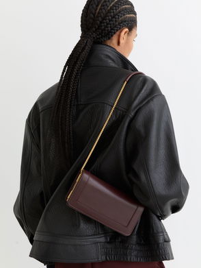 The Cavatelli clutch is crafted from premium leather that's tanned an enduring bordeaux hue using a chrome-free dyeing process. It's shaped with knotted drawstrings at either side that create an exaggerated, softly gathered profile and has slender straps.